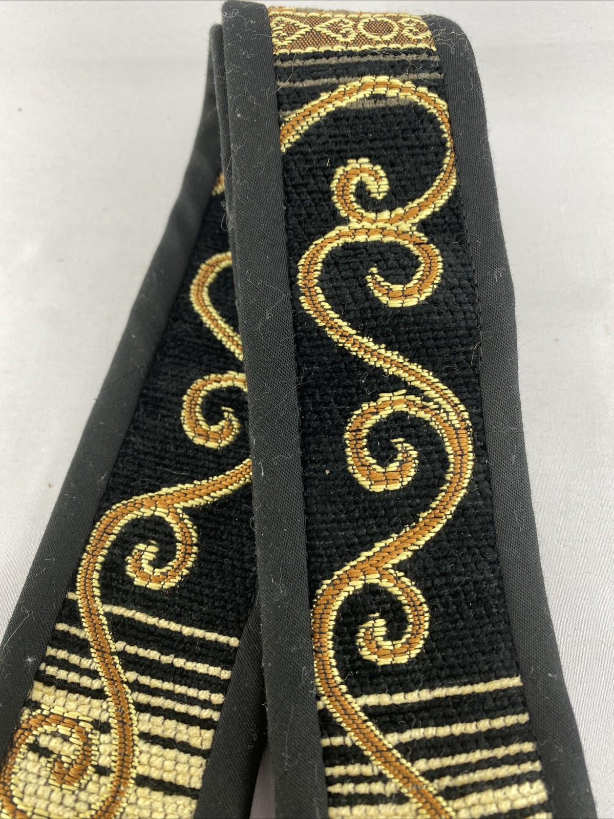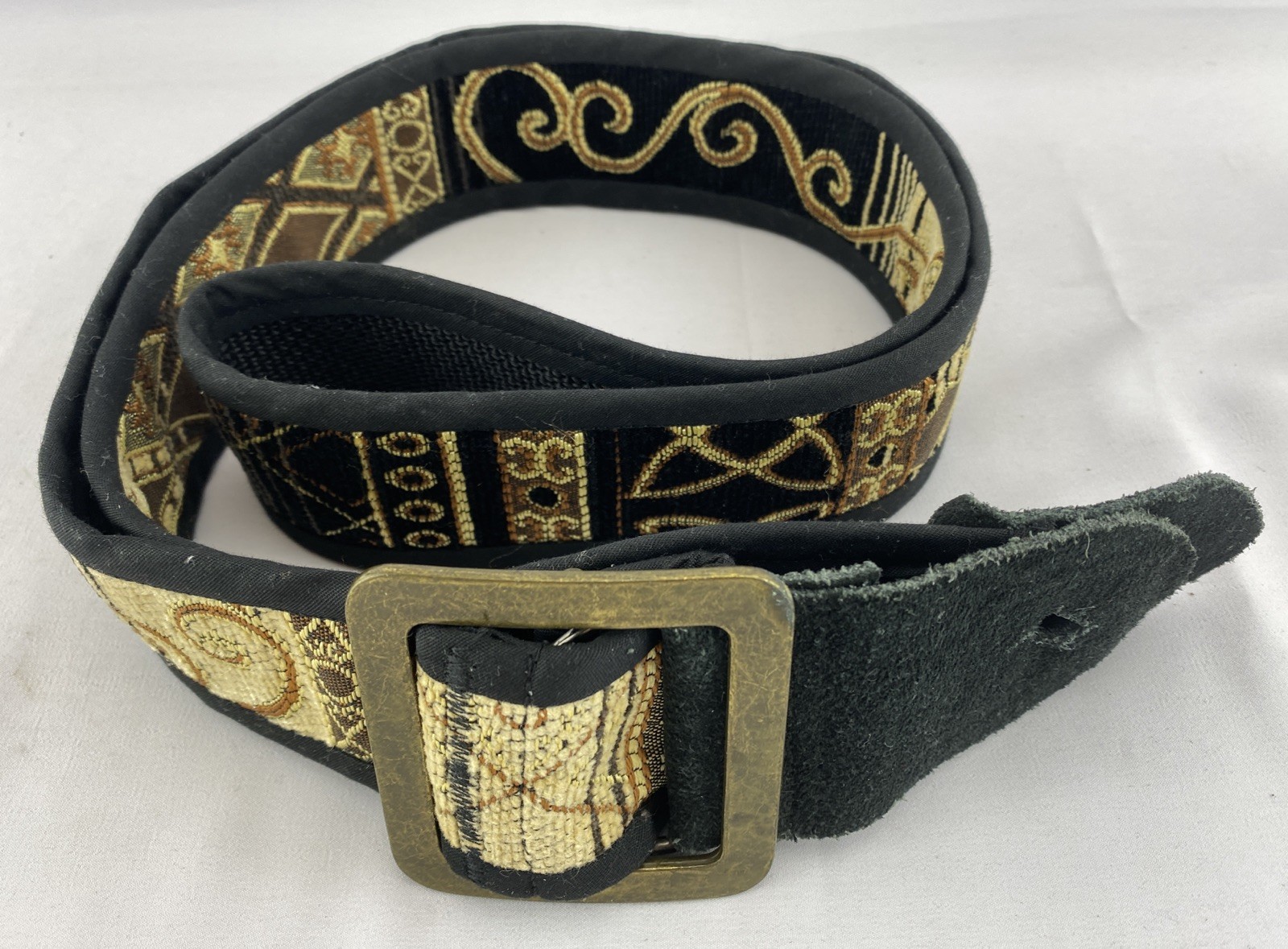 как выглядит Handmade Artisan Gold Linen Guitar Strap One Of A Kind Embroidered Patterns фото