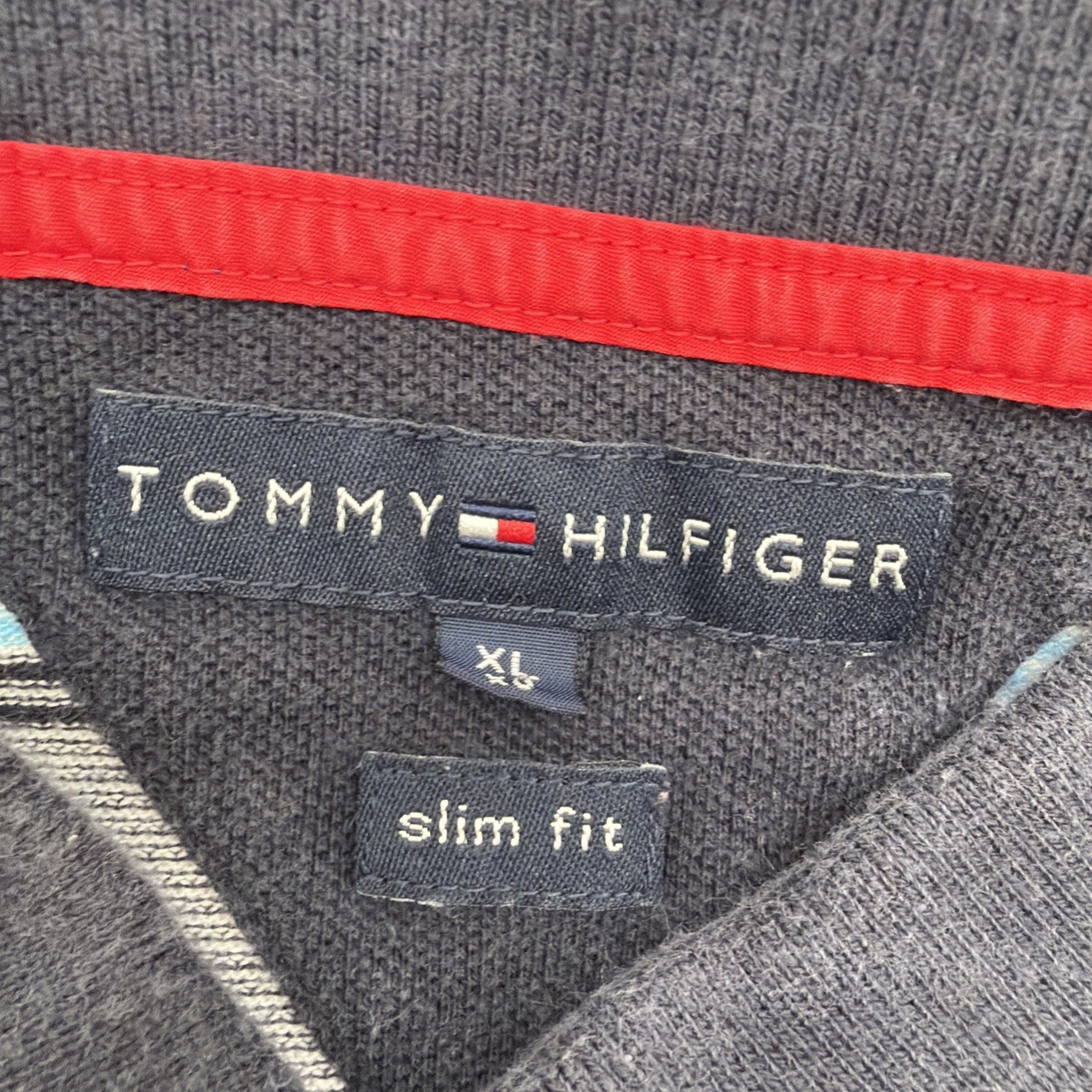 как выглядит Tommy Hilfiger Polo Slim Fit Shirt Men XL Striped Multicolor Logo. 40535 фото