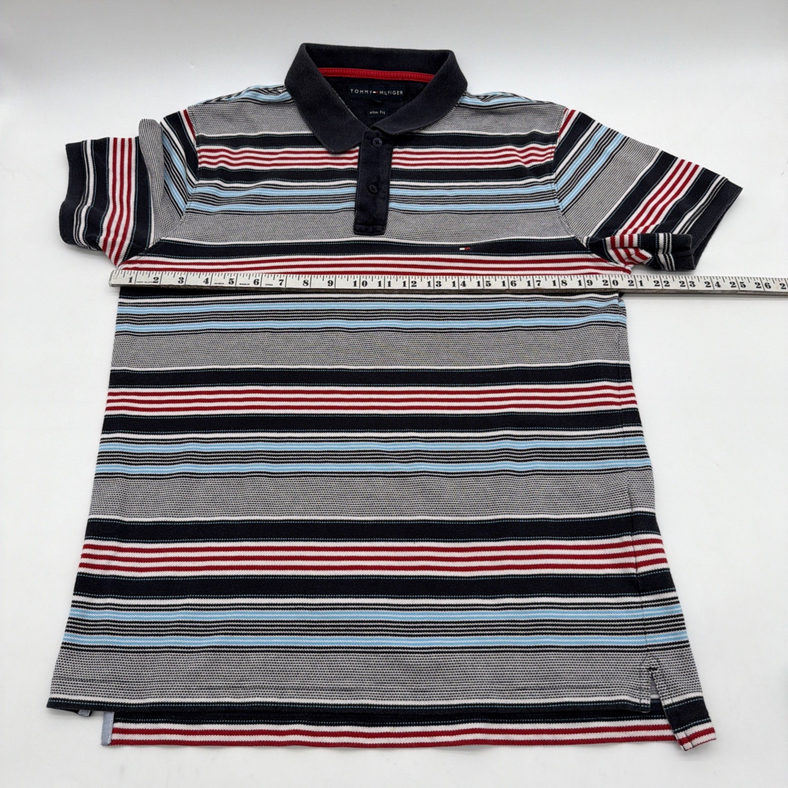 Tommy Hilfiger Polo Slim Fit Shirt Men XL Striped Multicolor Logo. 40535