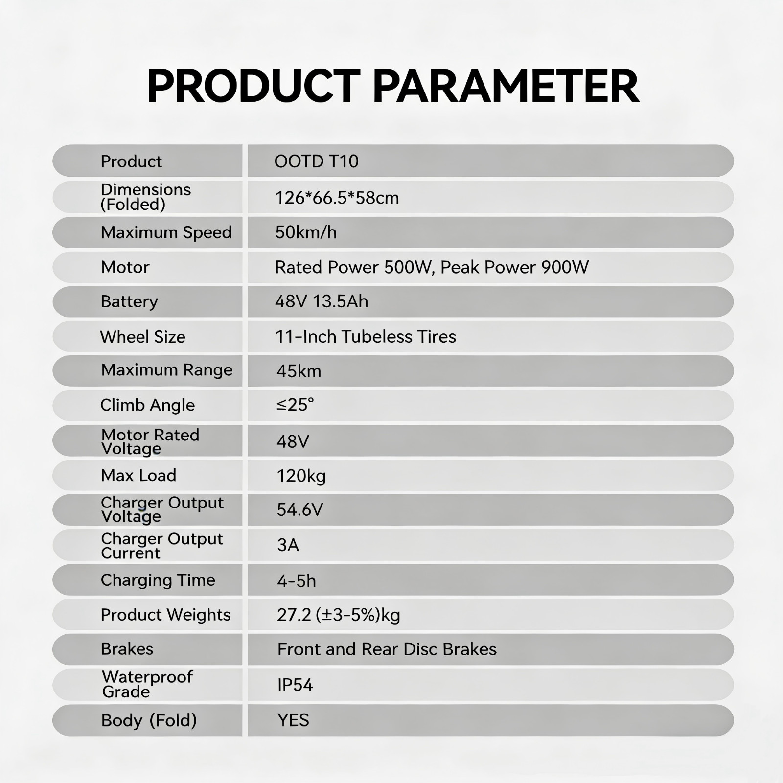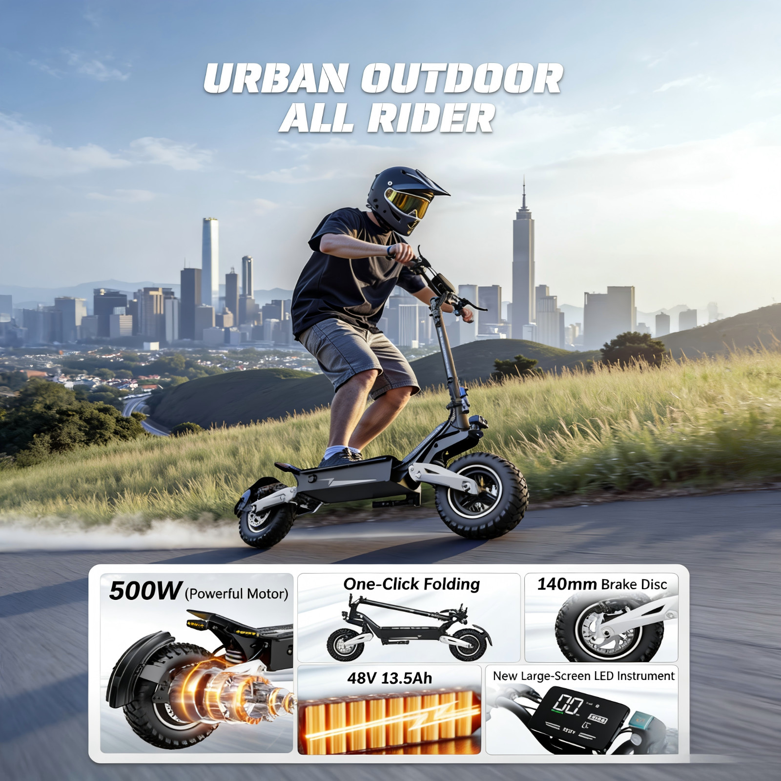 OOTD T10 500W 31MPH 11INCH Foldable 3 Speed Mode Off-Road Electric Scooter