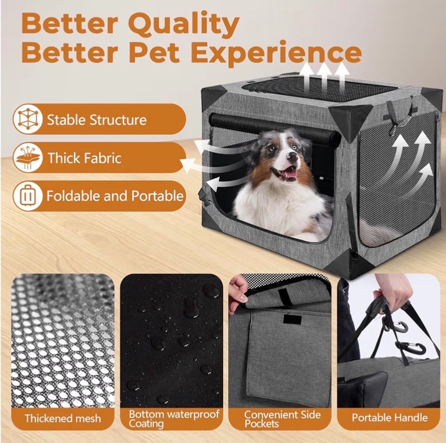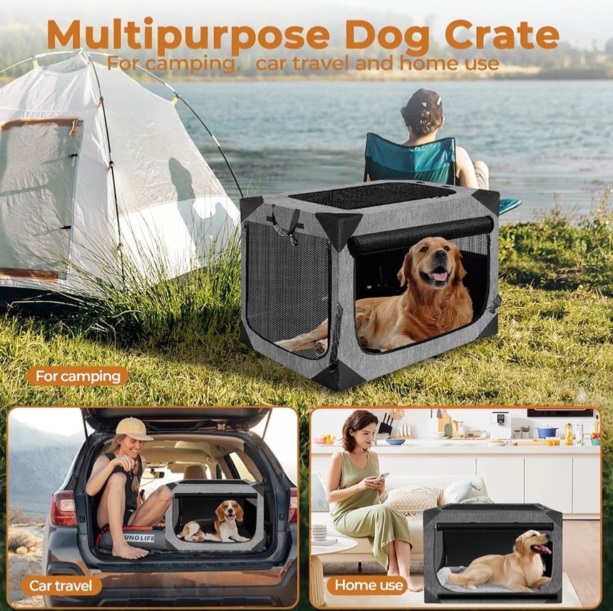 Dog Crate, Collapsible Soft Travel Crate for Large Dogs , Indoo