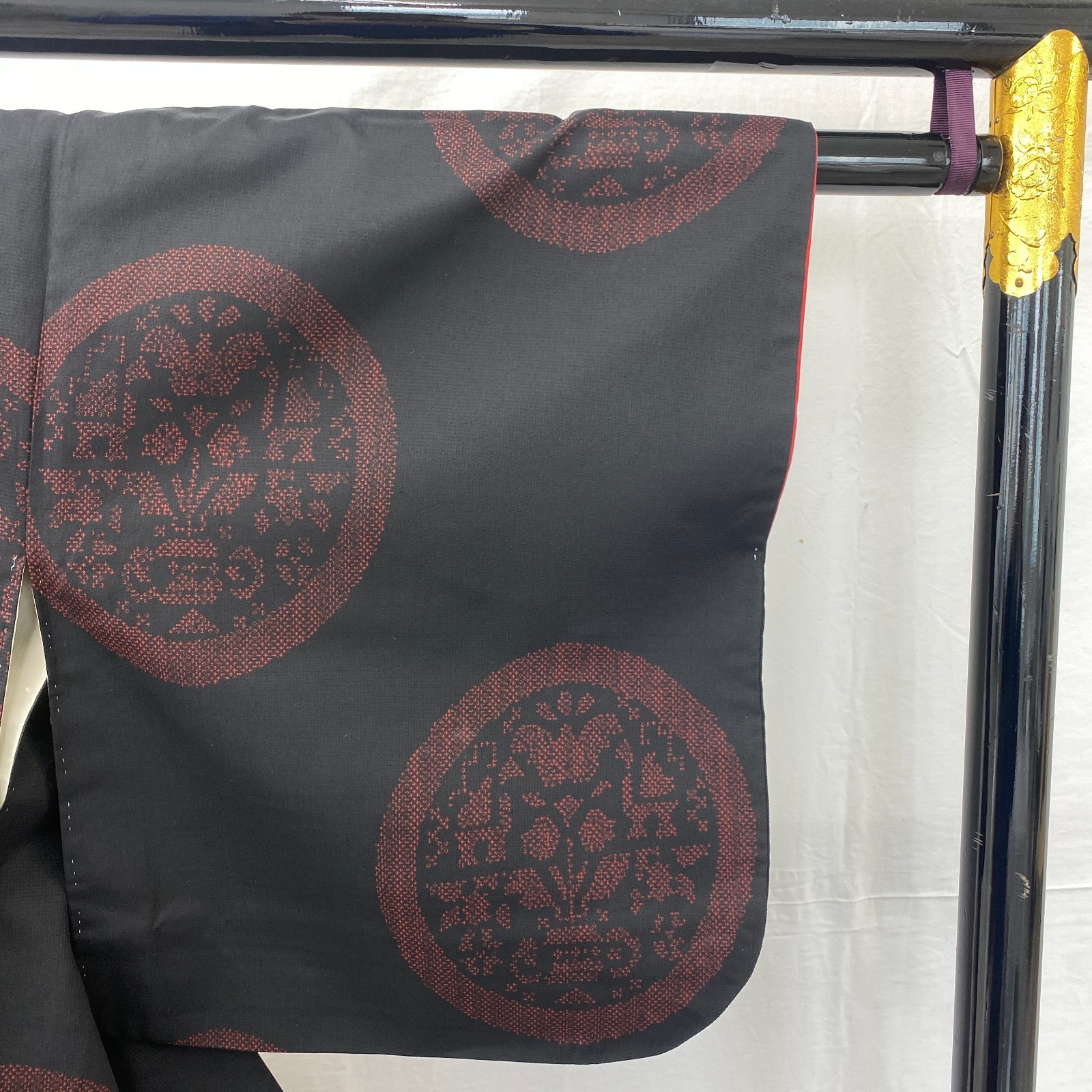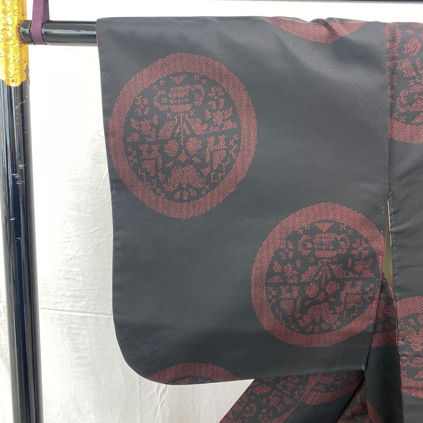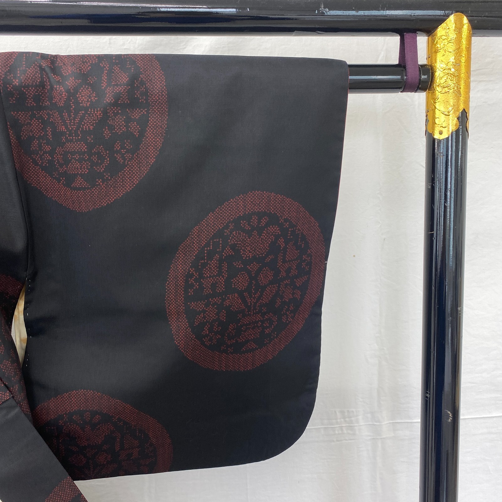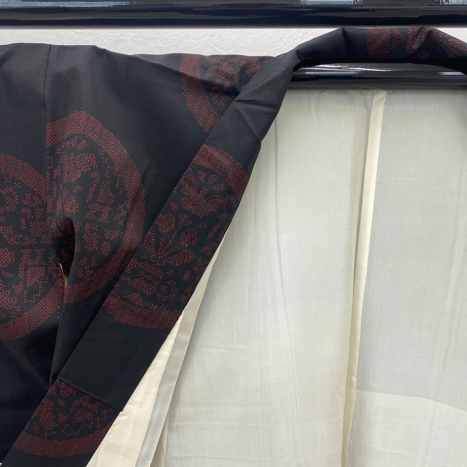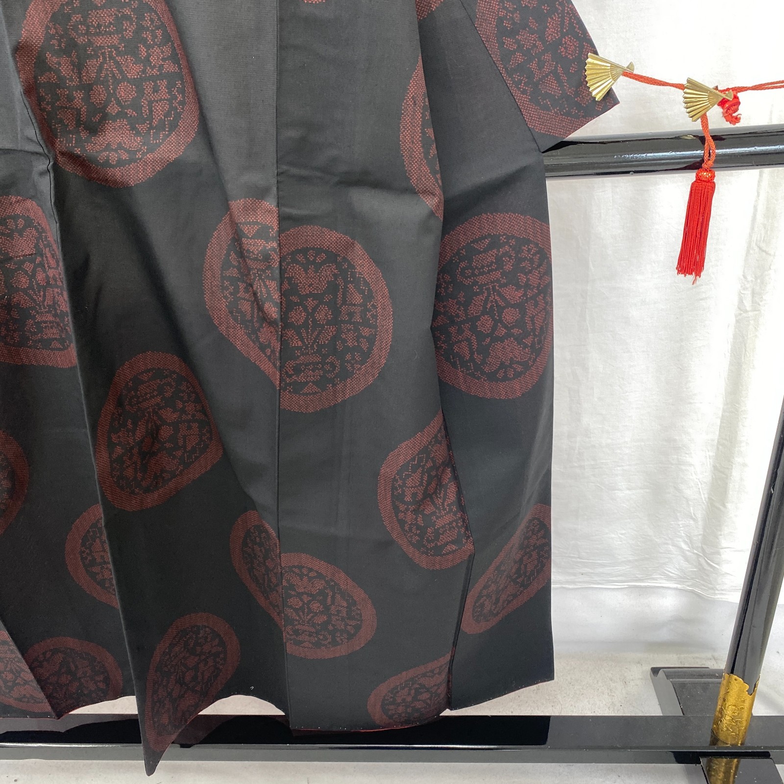 как выглядит Japanese Vintage Kimono Silk Black Tumugi Traditional Authentic Length 59 in фото