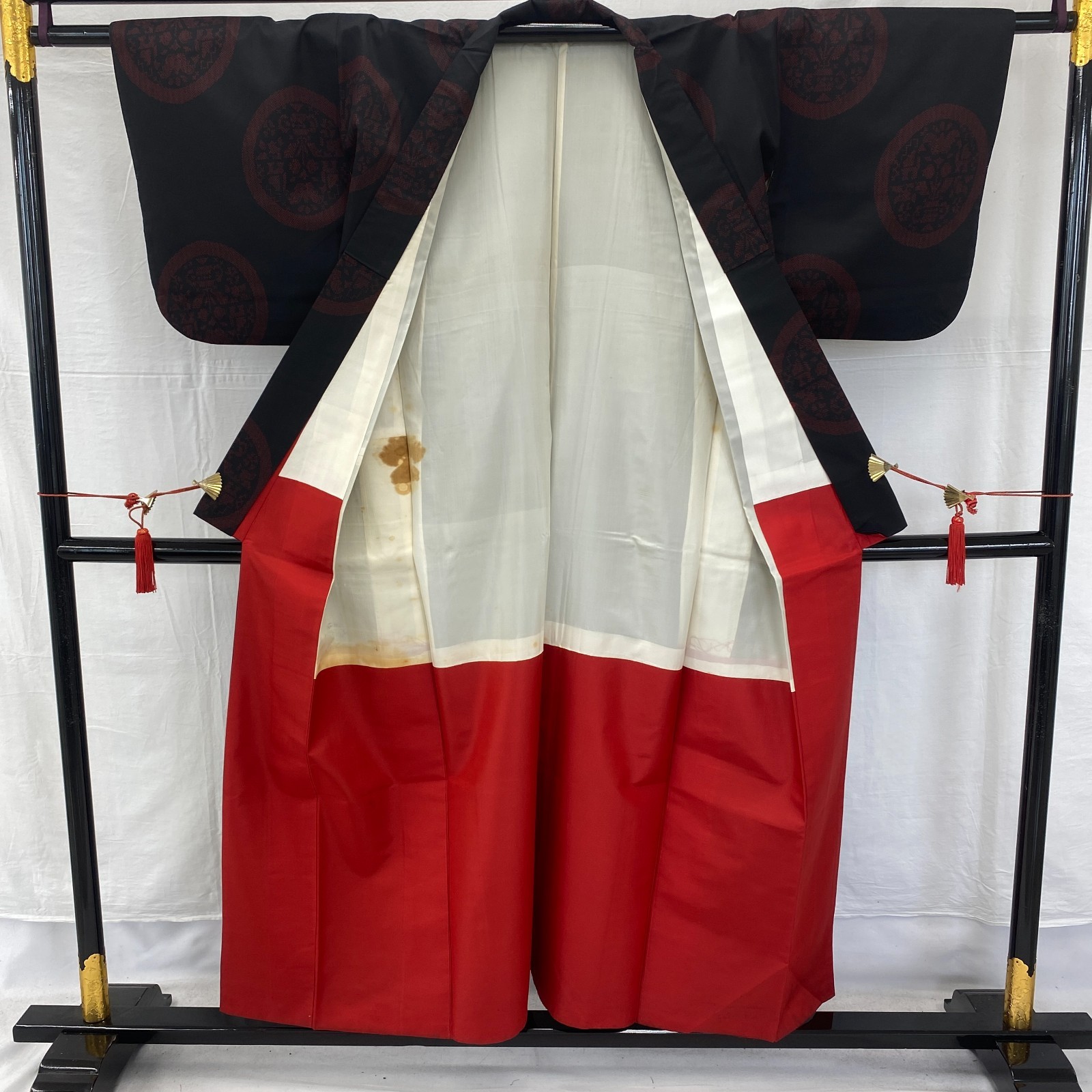 Japanese Vintage Kimono Silk Black Tumugi Traditional Authentic Length 59 in