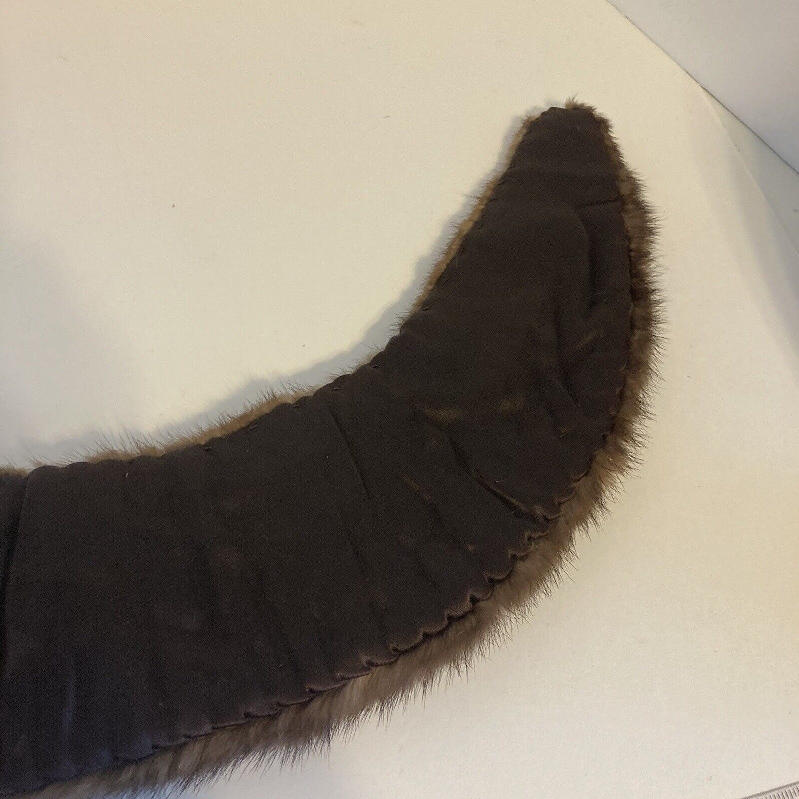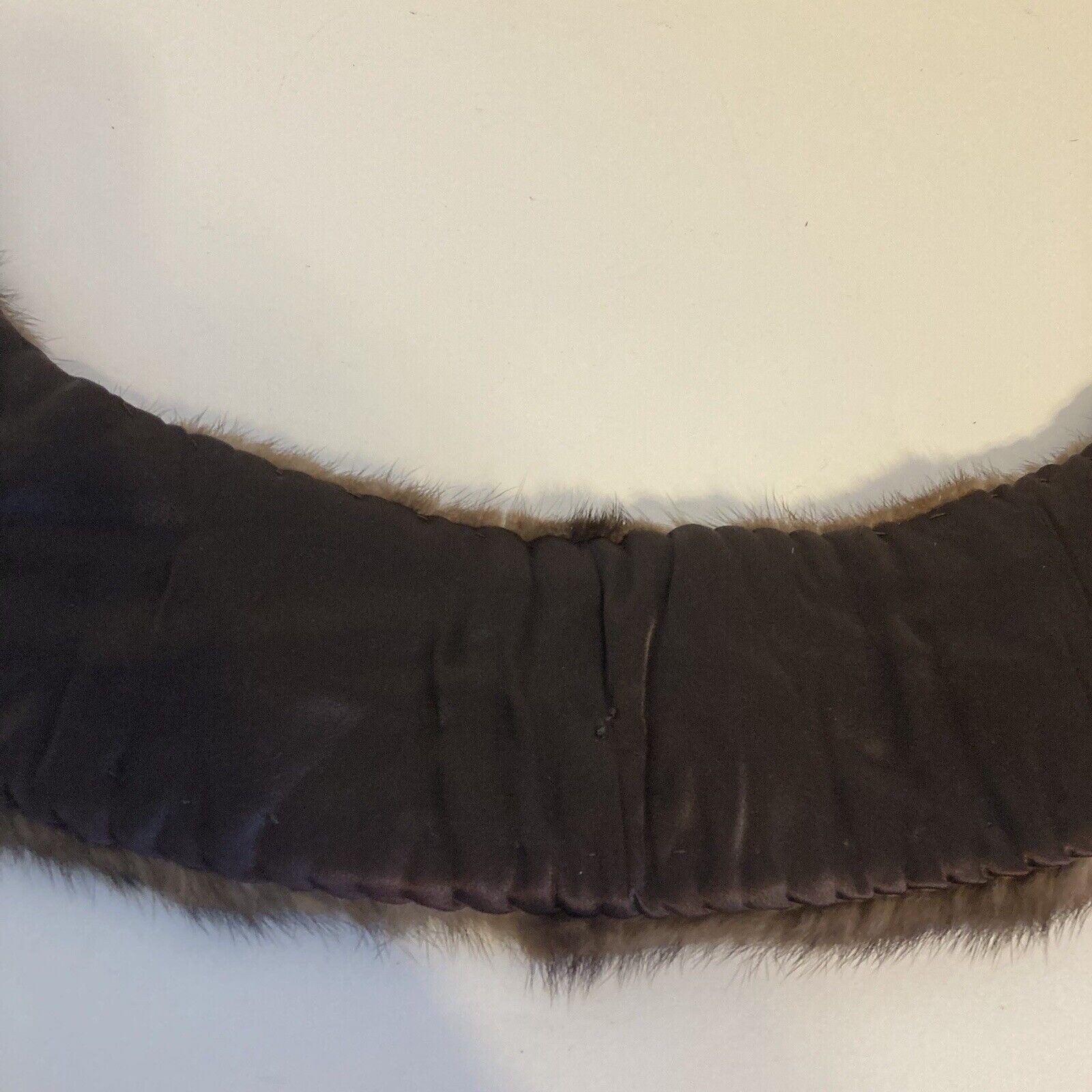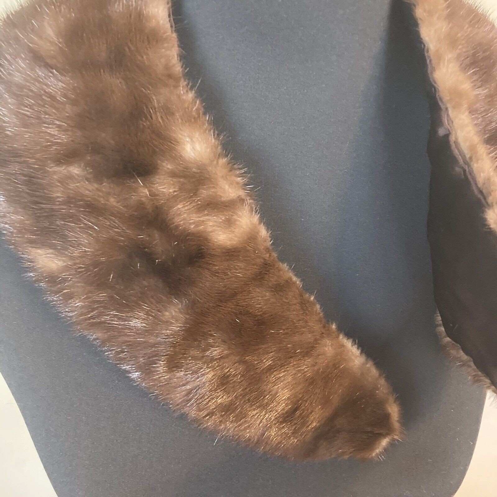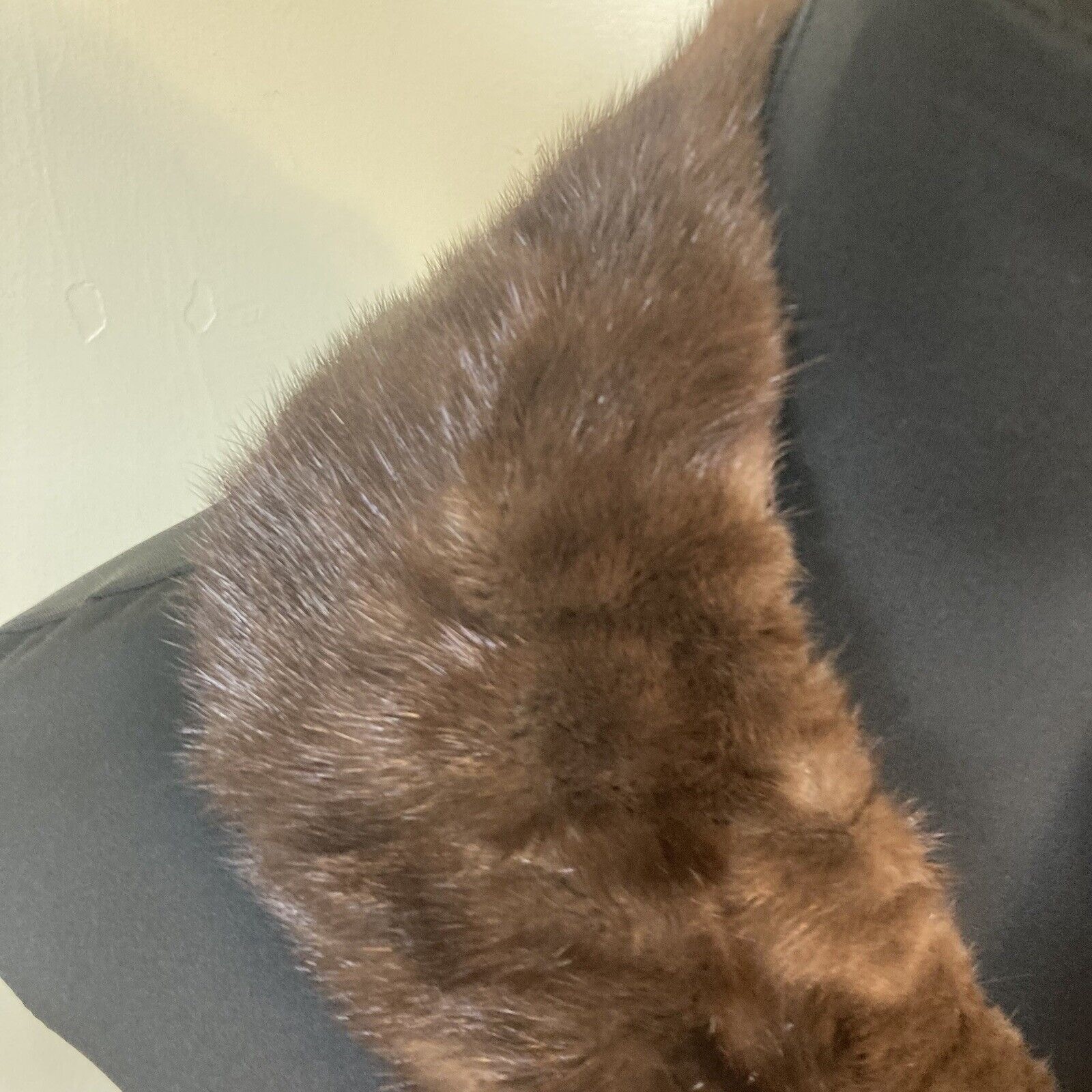 Vtg Womens Mink Fur Collar Satin Back Dark Brown 28 inch