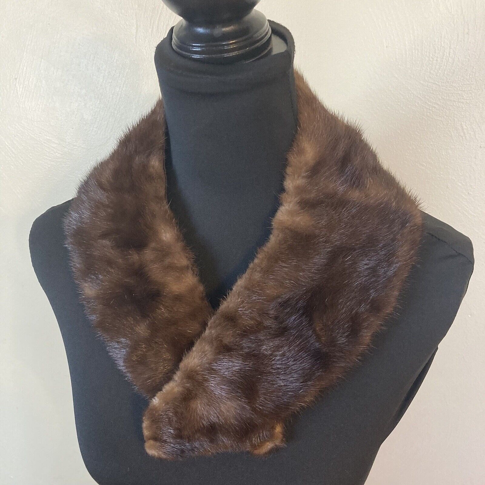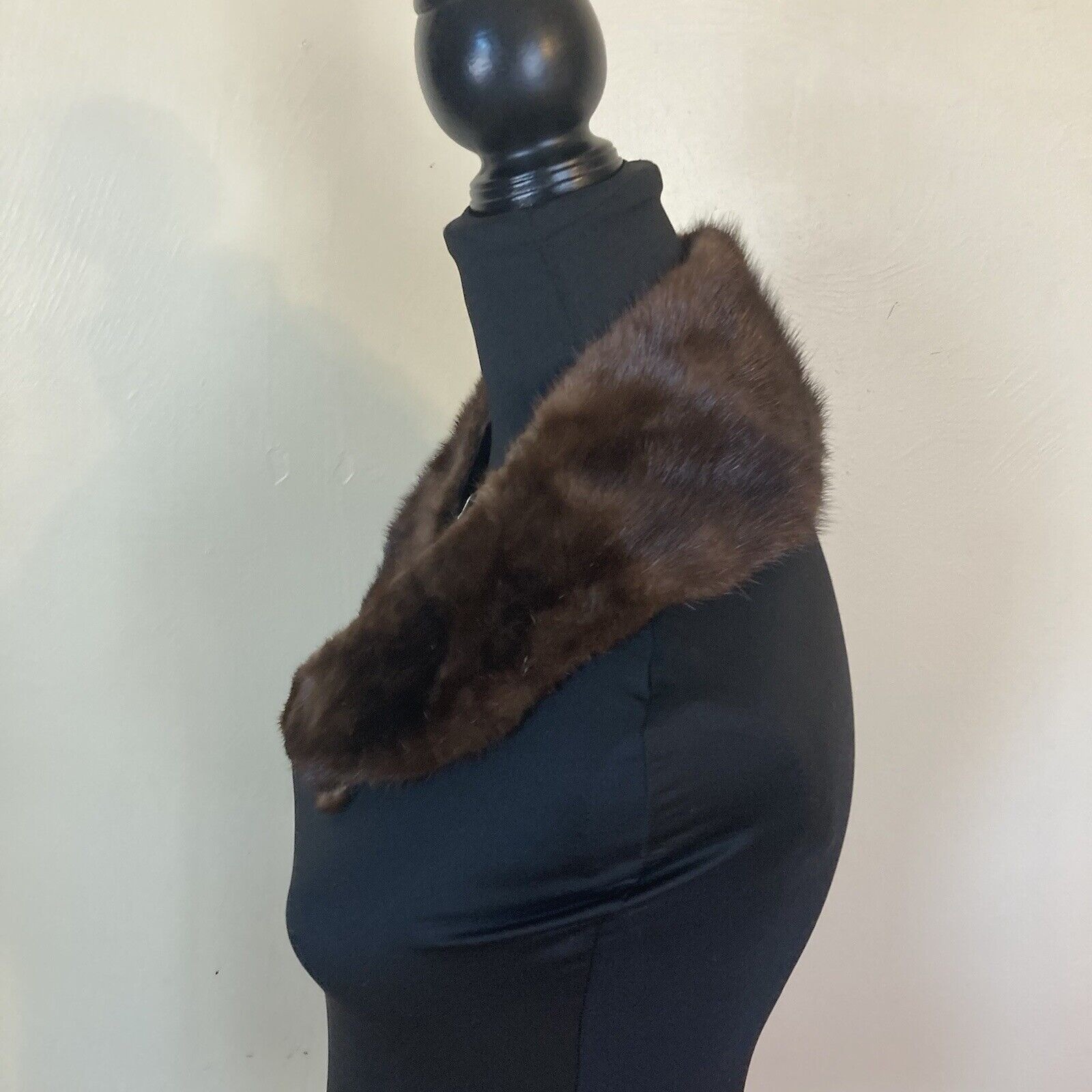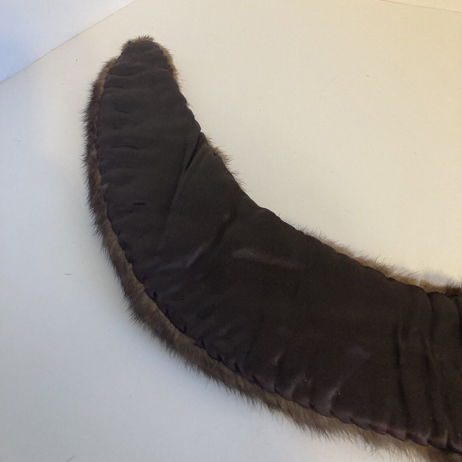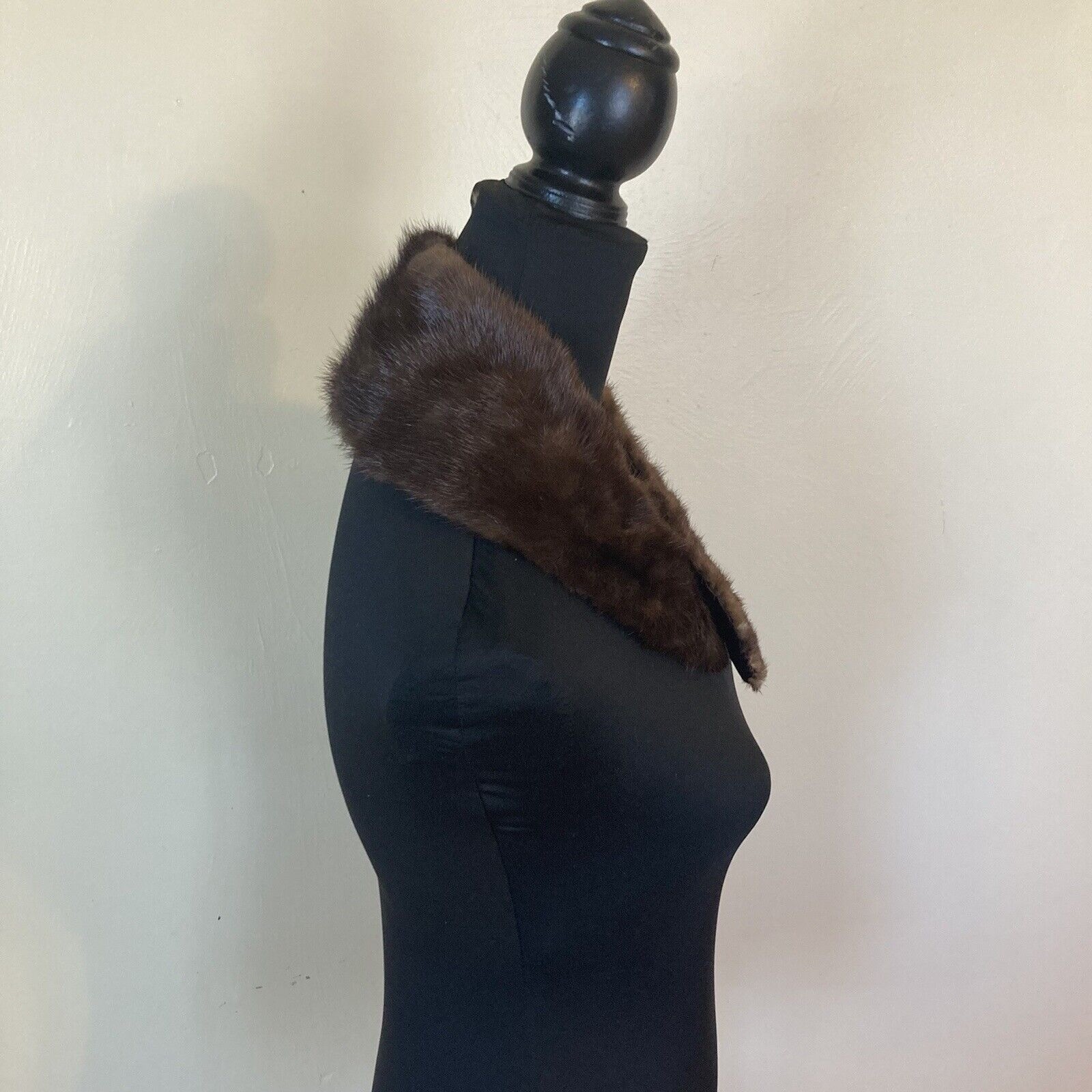Vtg Womens Mink Fur Collar Satin Back Dark Brown 28 inch