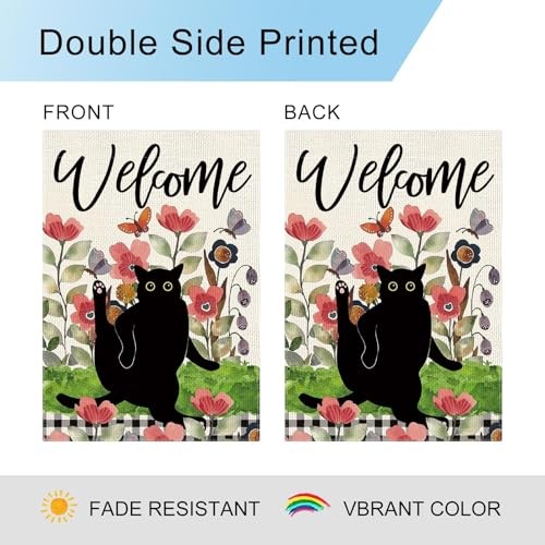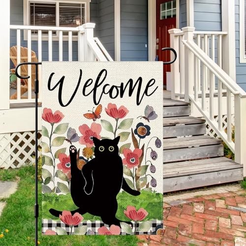 Spring Black Cat Garden Flag Funny Floral Cat Garden Flag 12 18 Inch Double