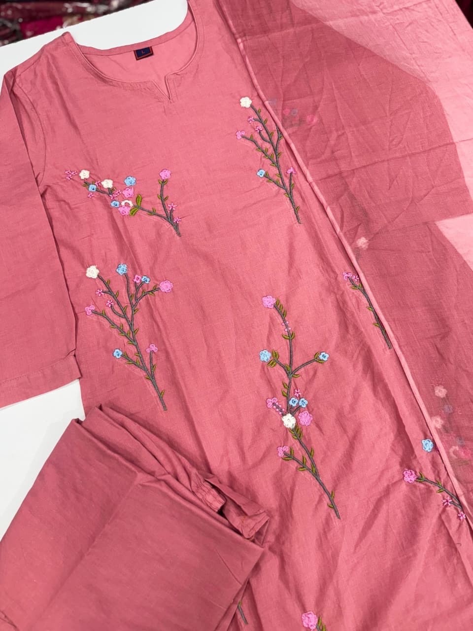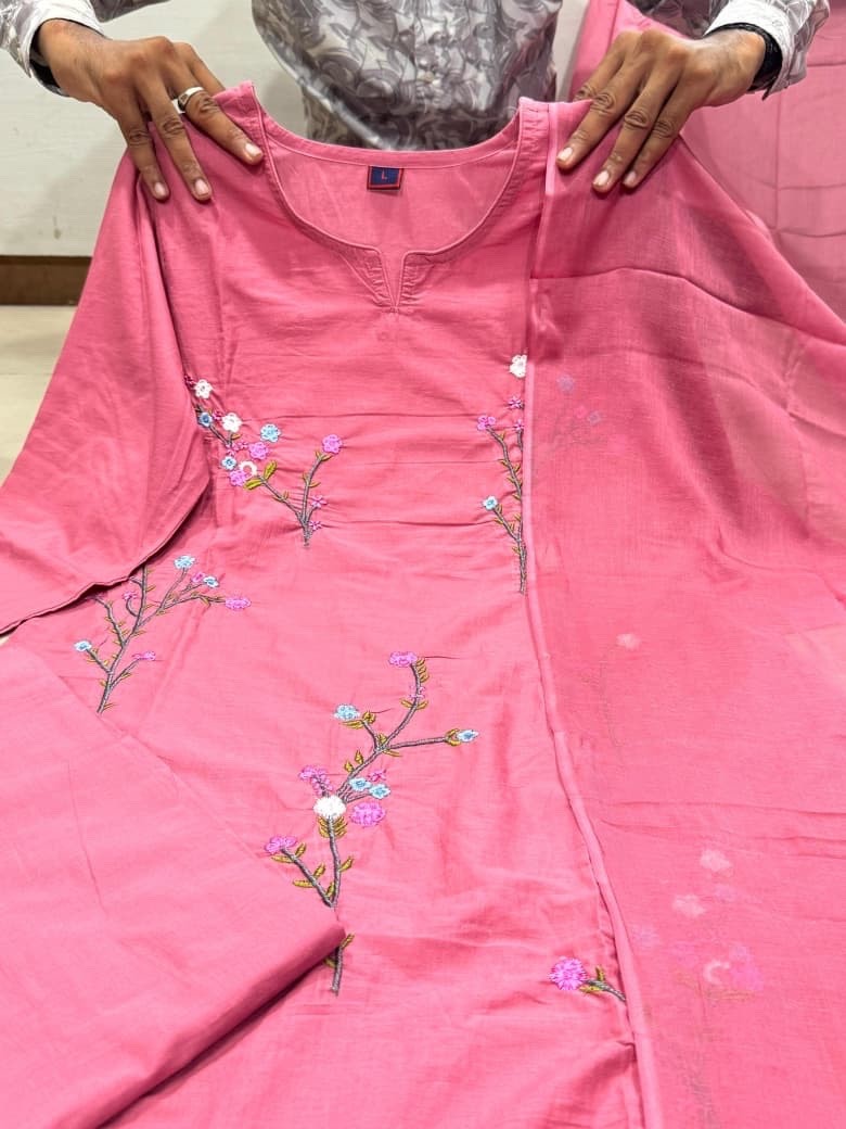Elegant Pink Floral Embroidered Kurta Set with Dupatta Indian Ethnic Salwar Suit
