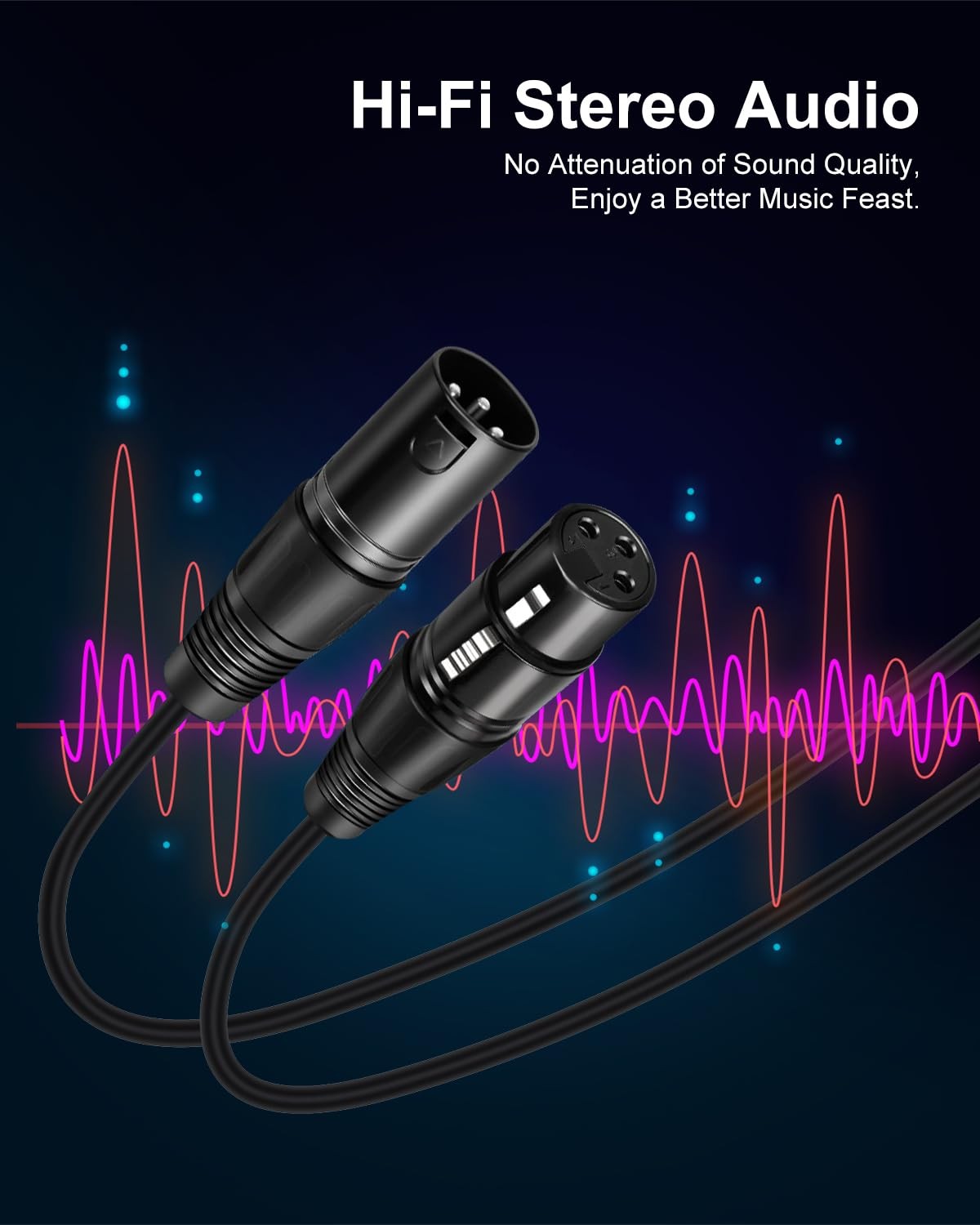 2 Pack Premium XLR Cable - 3ft, Male to Female Microphone 3 Feet, Black