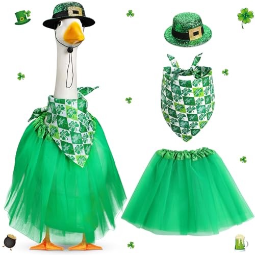 3pcs St. Patrick's Porch Goose Outfits for 23 Lawn Goose Four Leaf Clover