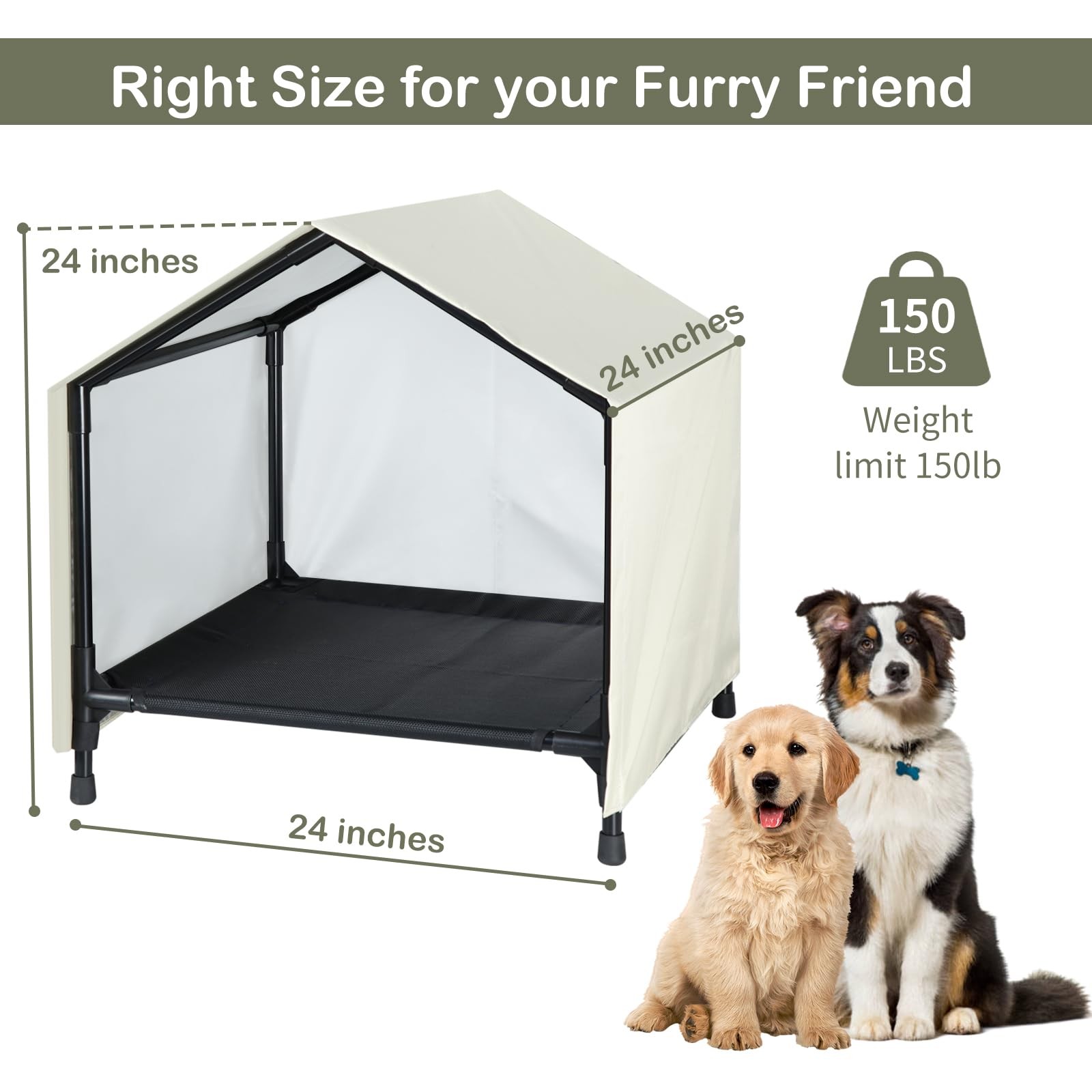 Indoor Outdoor Dog House Elevated Dog Bed with Canopy for Small Medium Dogs...