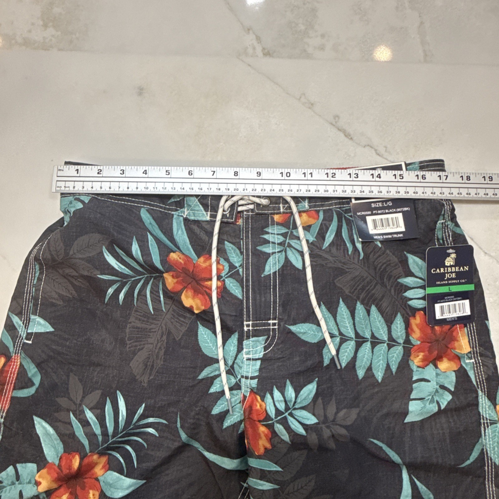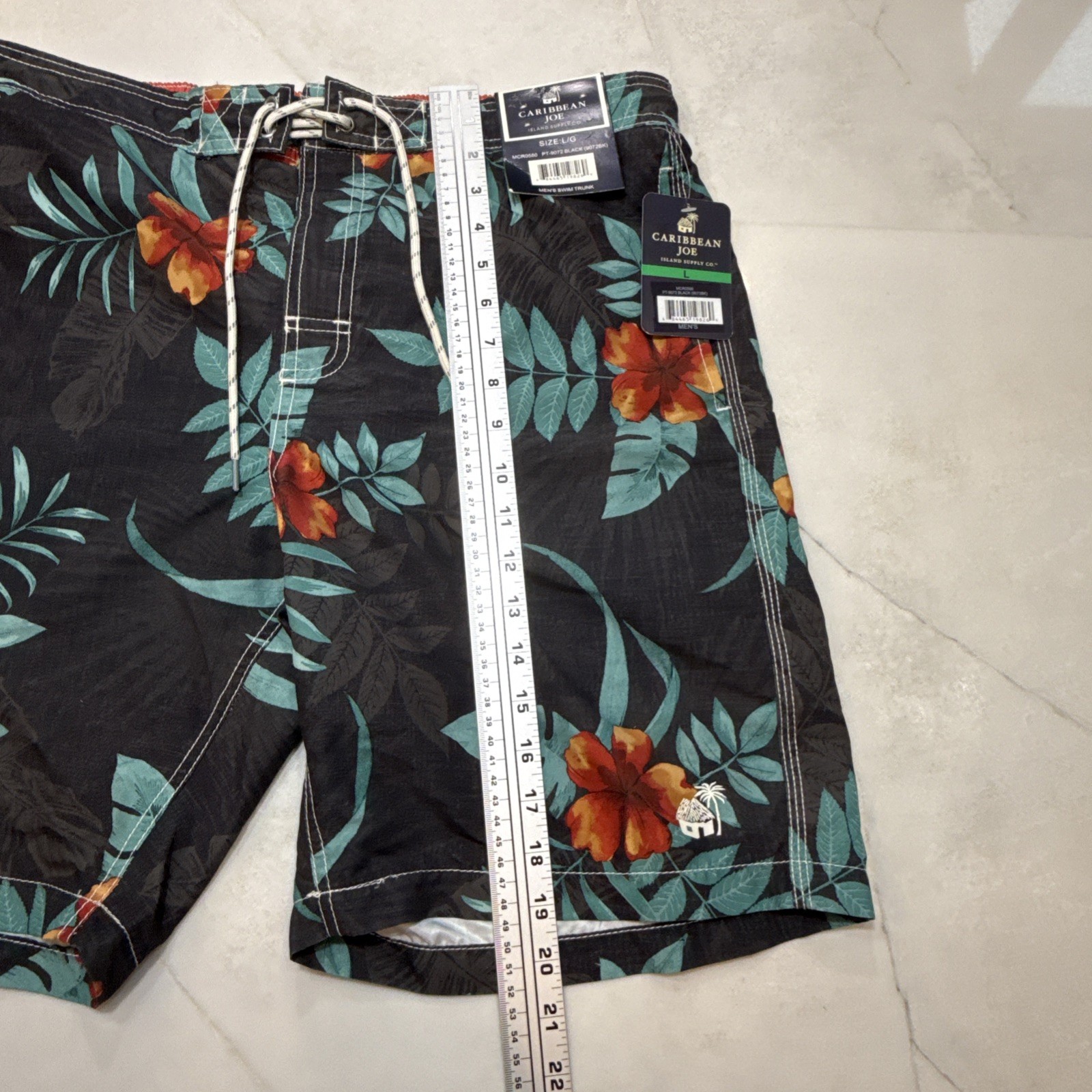 как выглядит Caribbean Joe Men Swim Trunks Tropical Floral Black Drawstring L фото