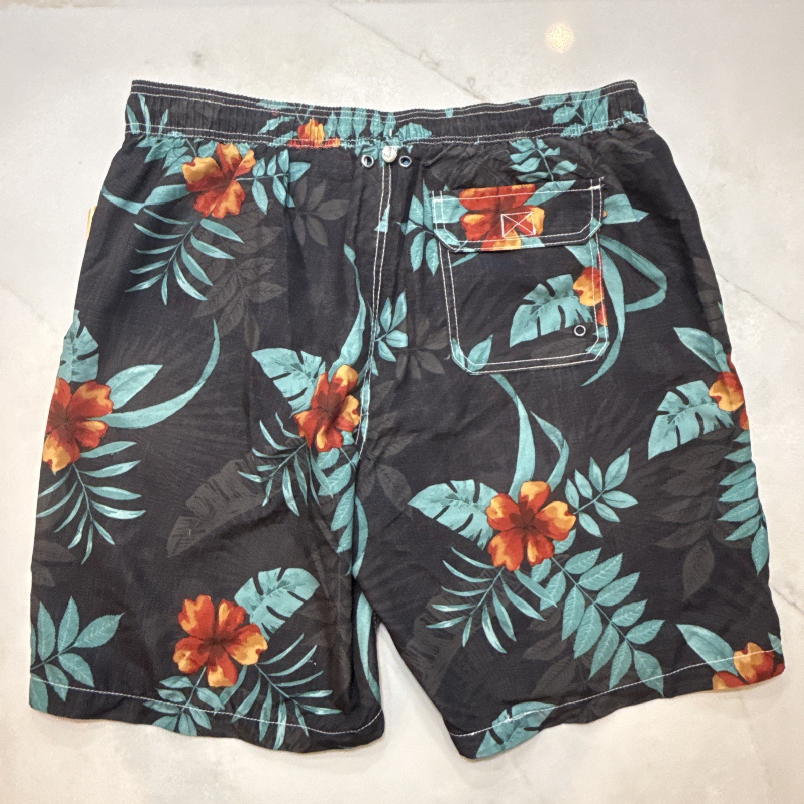 Caribbean Joe Men Swim Trunks Tropical Floral Black Drawstring L