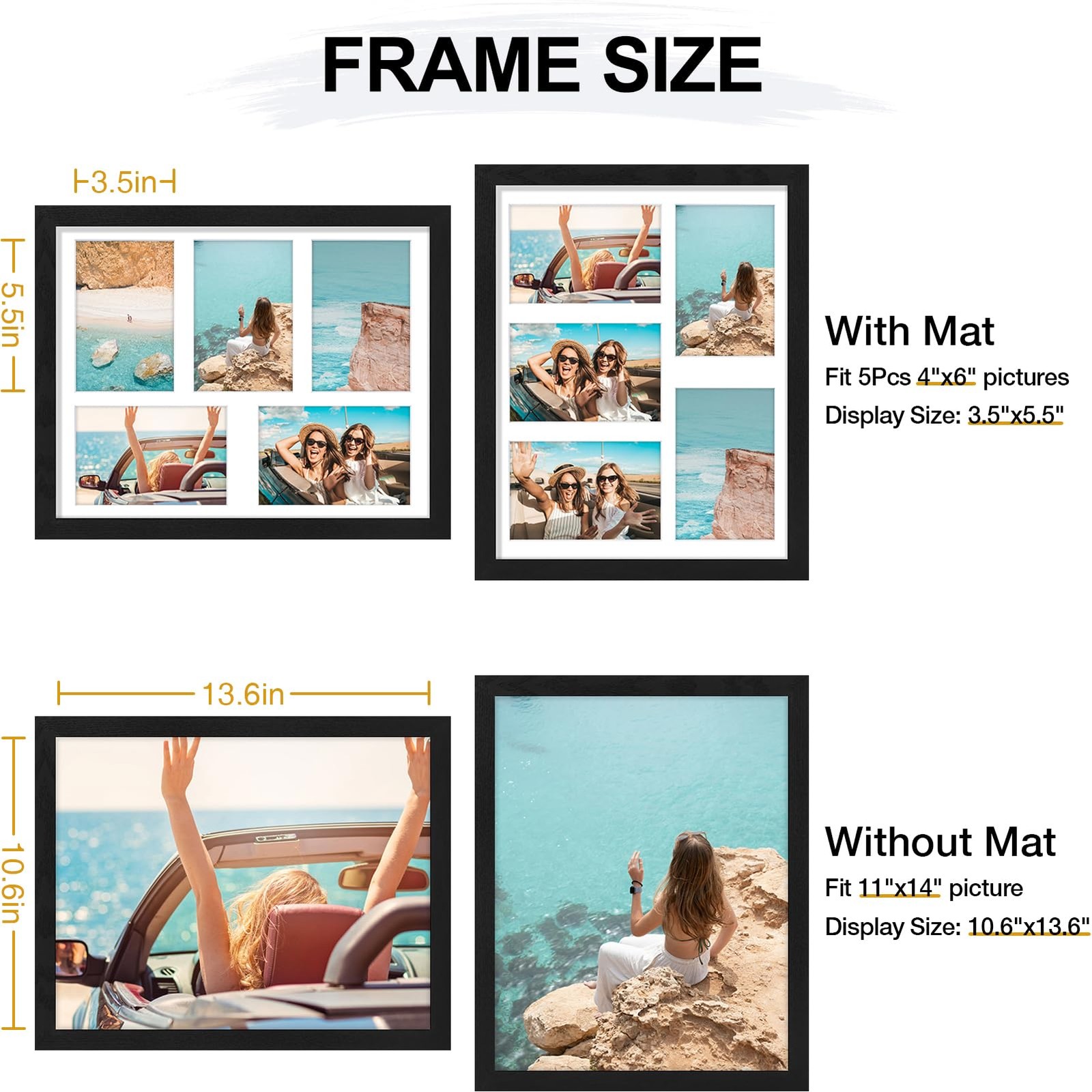 11x14 Collage Picture Frame, Displays 5Pcs 4x6 Pictures with Mat or 1Pcs 11x1...