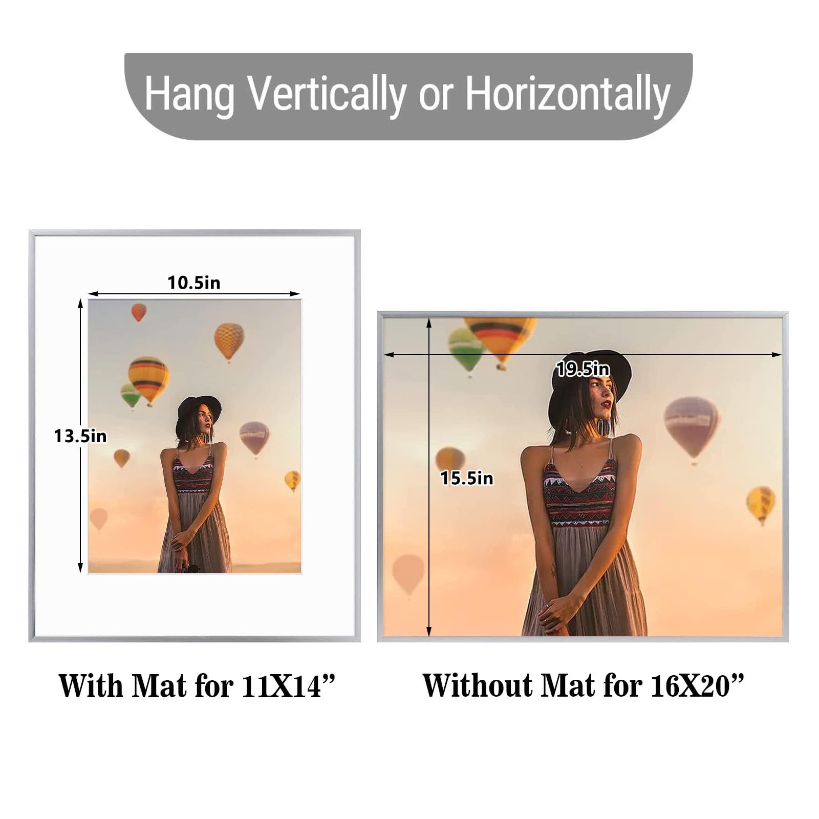 , 16x20 Aluminum Picture Frame - 16 x 20 Silver Frame with Removable Mat for ...