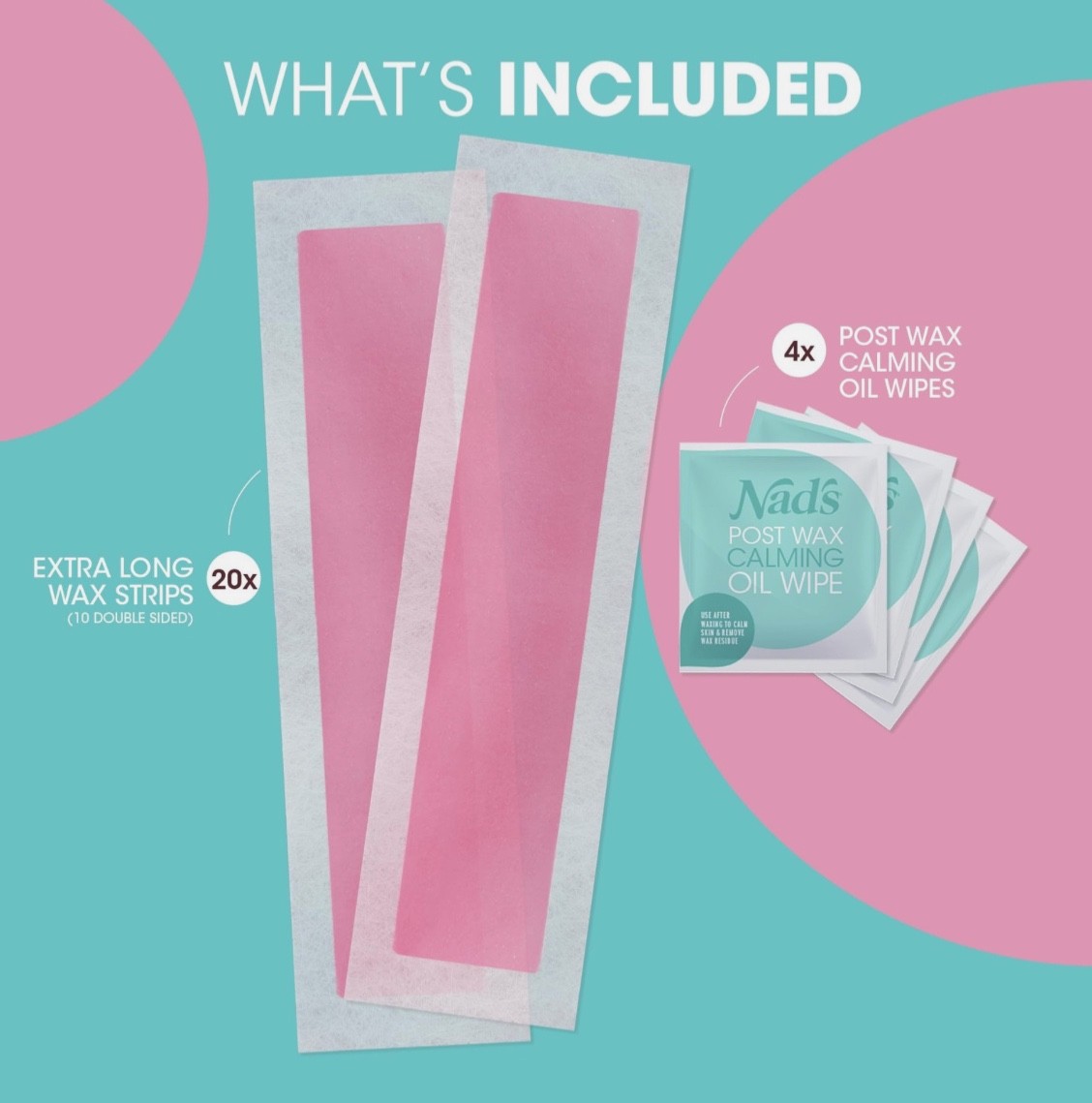 Nad's Body Wax Strips - Extra Long Waxing Strips - Hair Removal for Women - 2PK