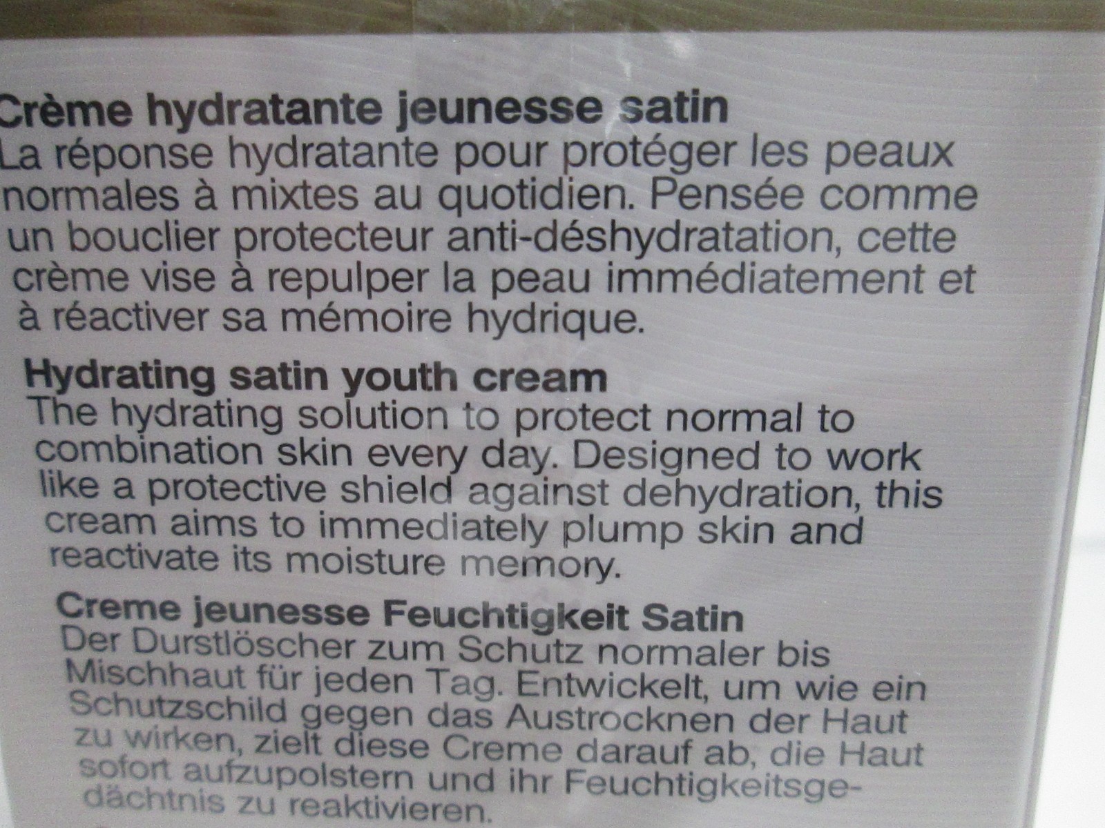 Main Purpose: this hydrating to protect, normal and cmbination skin, a protective shield against dehydration, to immediately, plump skin, reactive its moisture