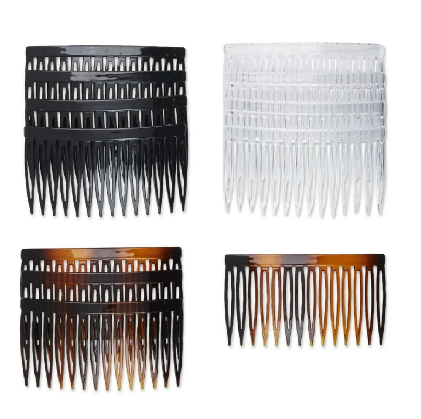 Scunci Plastic Side Hair Combs, Black, Clear, and Tortoise Shell, 12 Ct