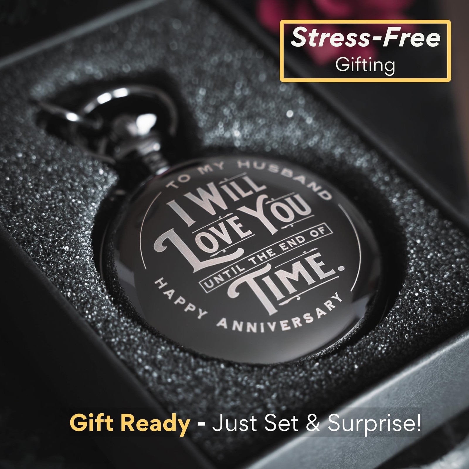 Anniversary Pocket Watch for Husband - Engraved Silver Stainless Steel - Mean...
