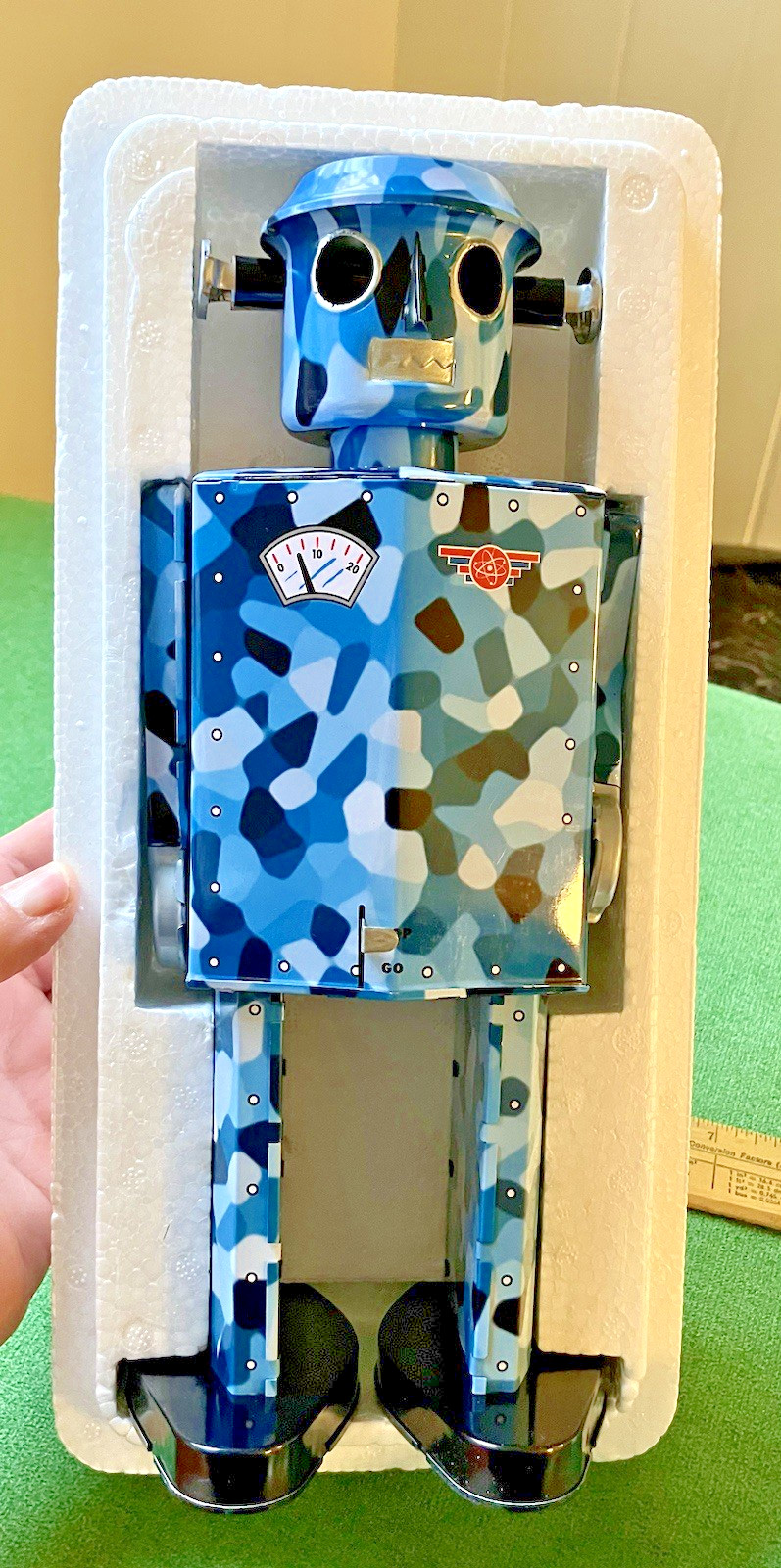 как выглядит 2004 Schylling Camouflage Robot Wind-Up Tin WORKS In Box 11" COA Has Key фото