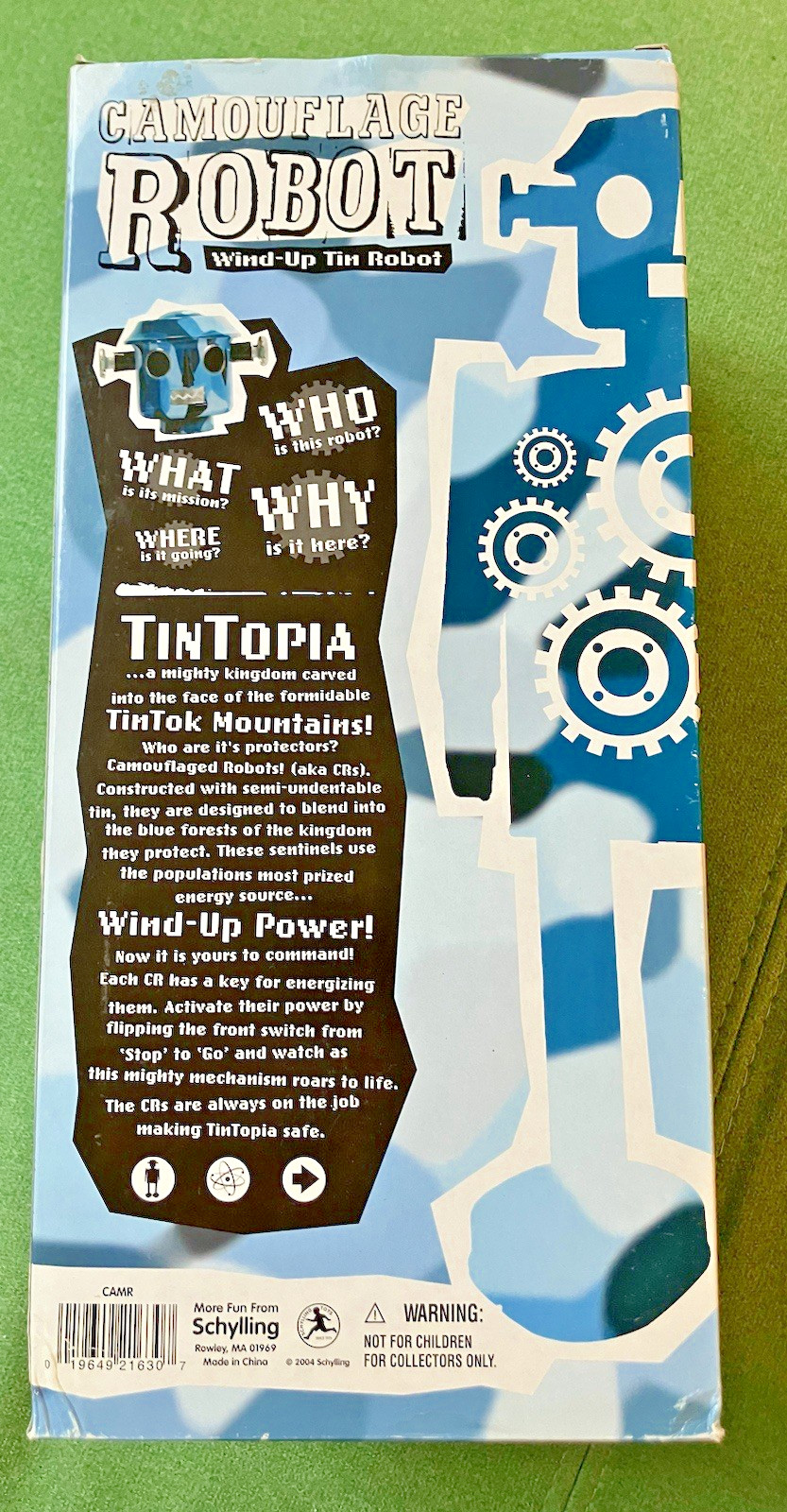 2004 Schylling Camouflage Robot Wind-Up Tin WORKS In Box 11 COA Has Key