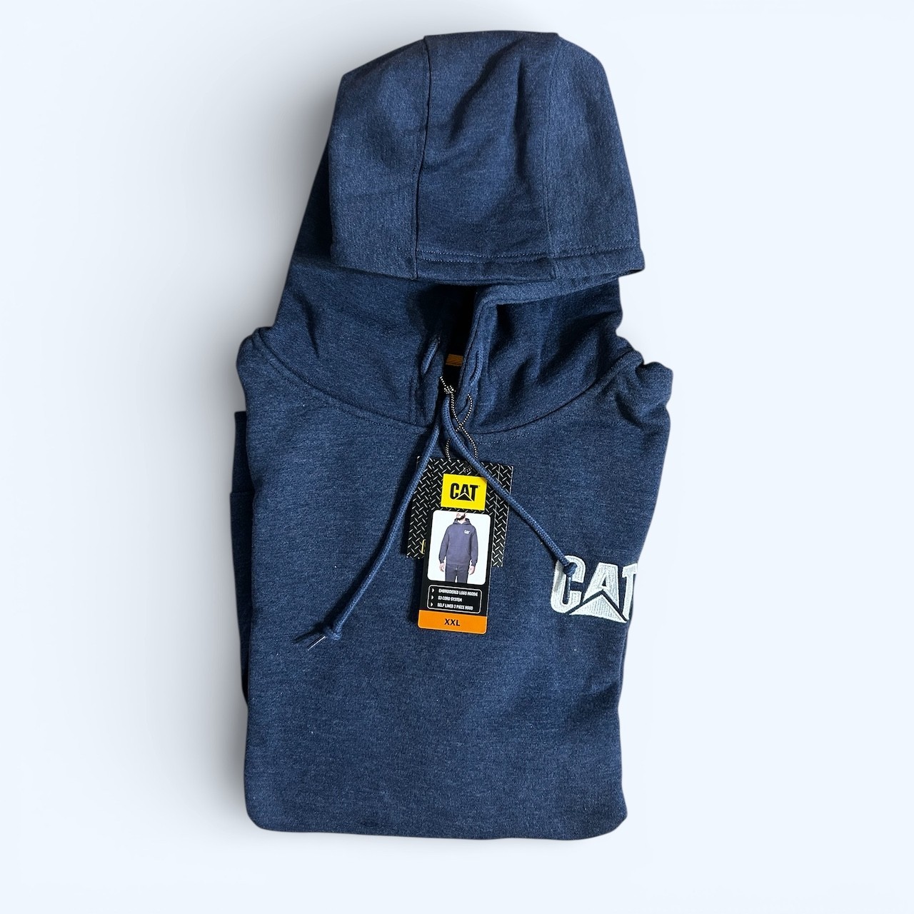 как выглядит CAT Caterpillar Mens Heavyweight hoodie Hooded Sweatshirt Blue Size XXL фото