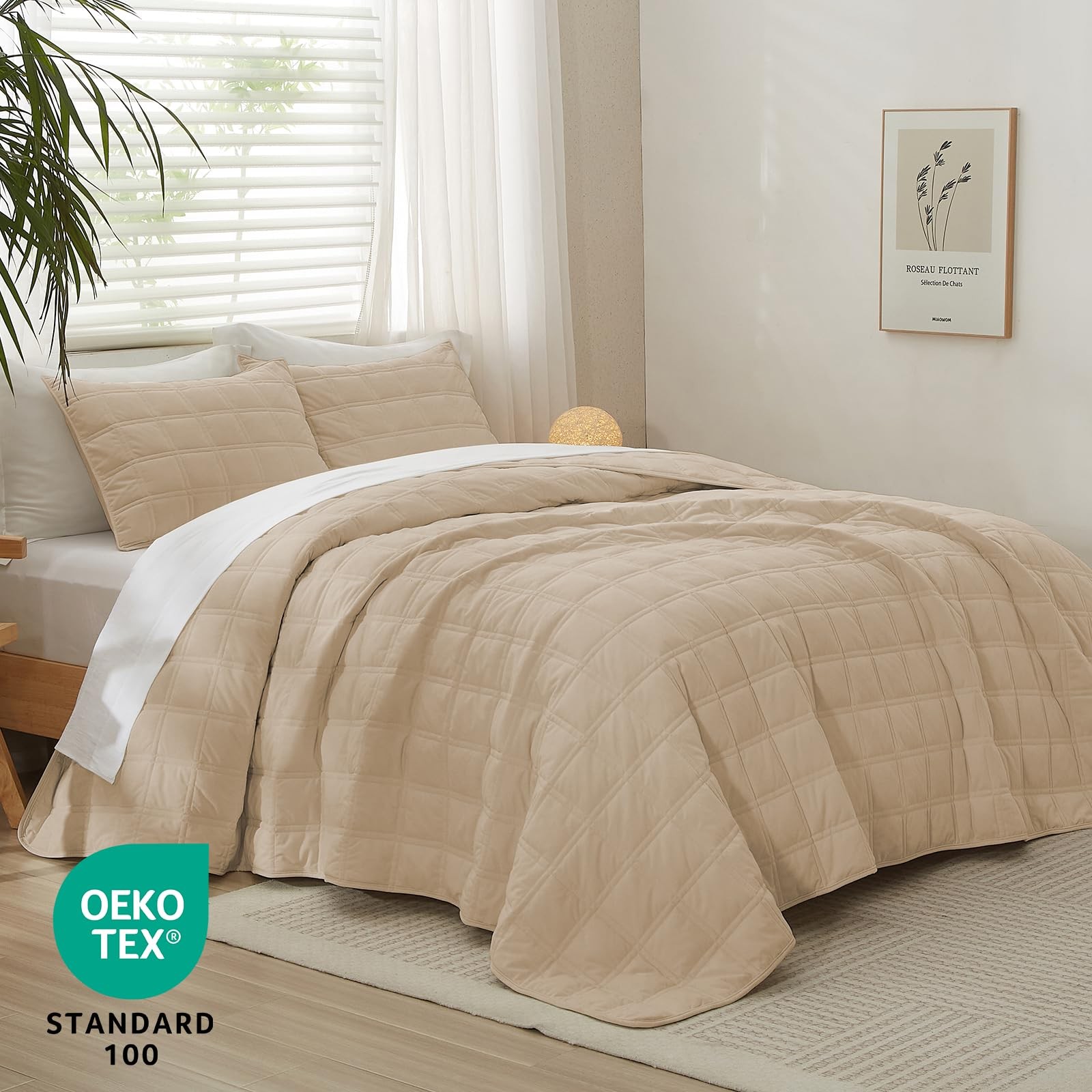 как выглядит Velvet Full/Queen Size Quilt Set 3 Pieces, Lightweight Soft Bedspread Coverle... фото