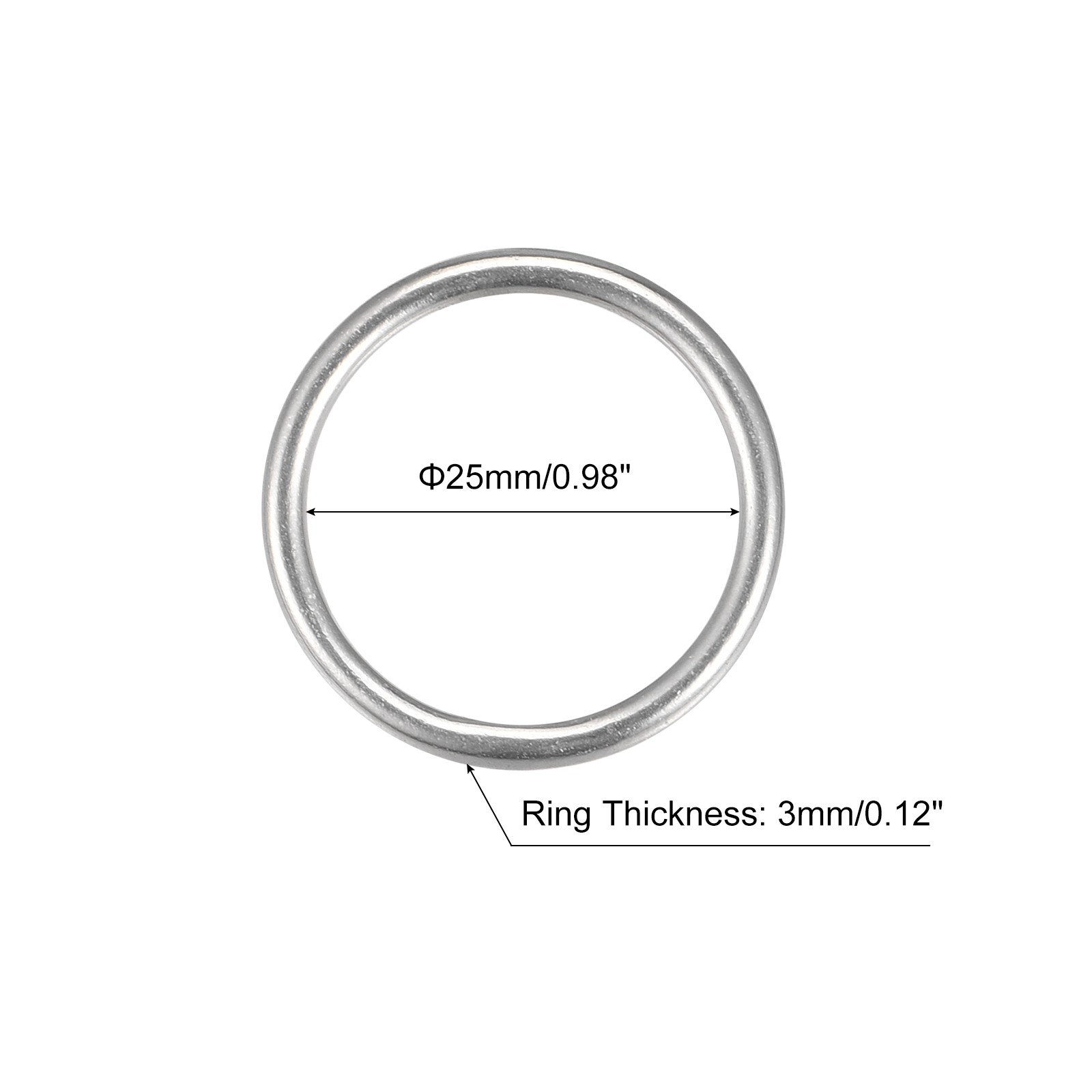 316 Stainless Steel Round Welded Circle O-Ring 25mm 0.98 ID 3mm Thickness 4pcs