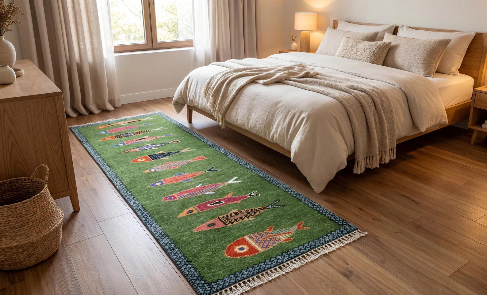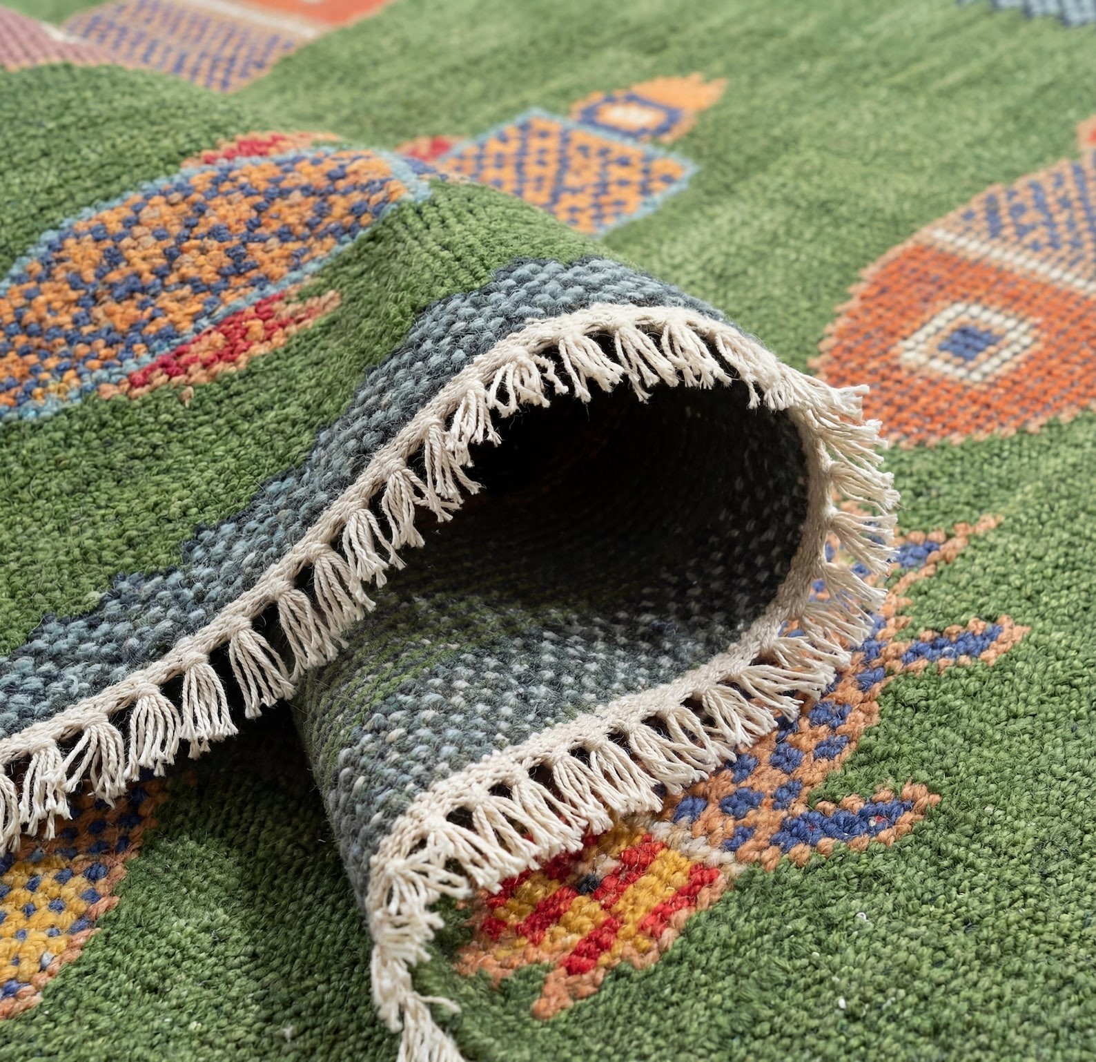 как выглядит Handwoven Runner Wool Kilim Dhurrie Rug Color Green Multi Design Carpet Rug фото
