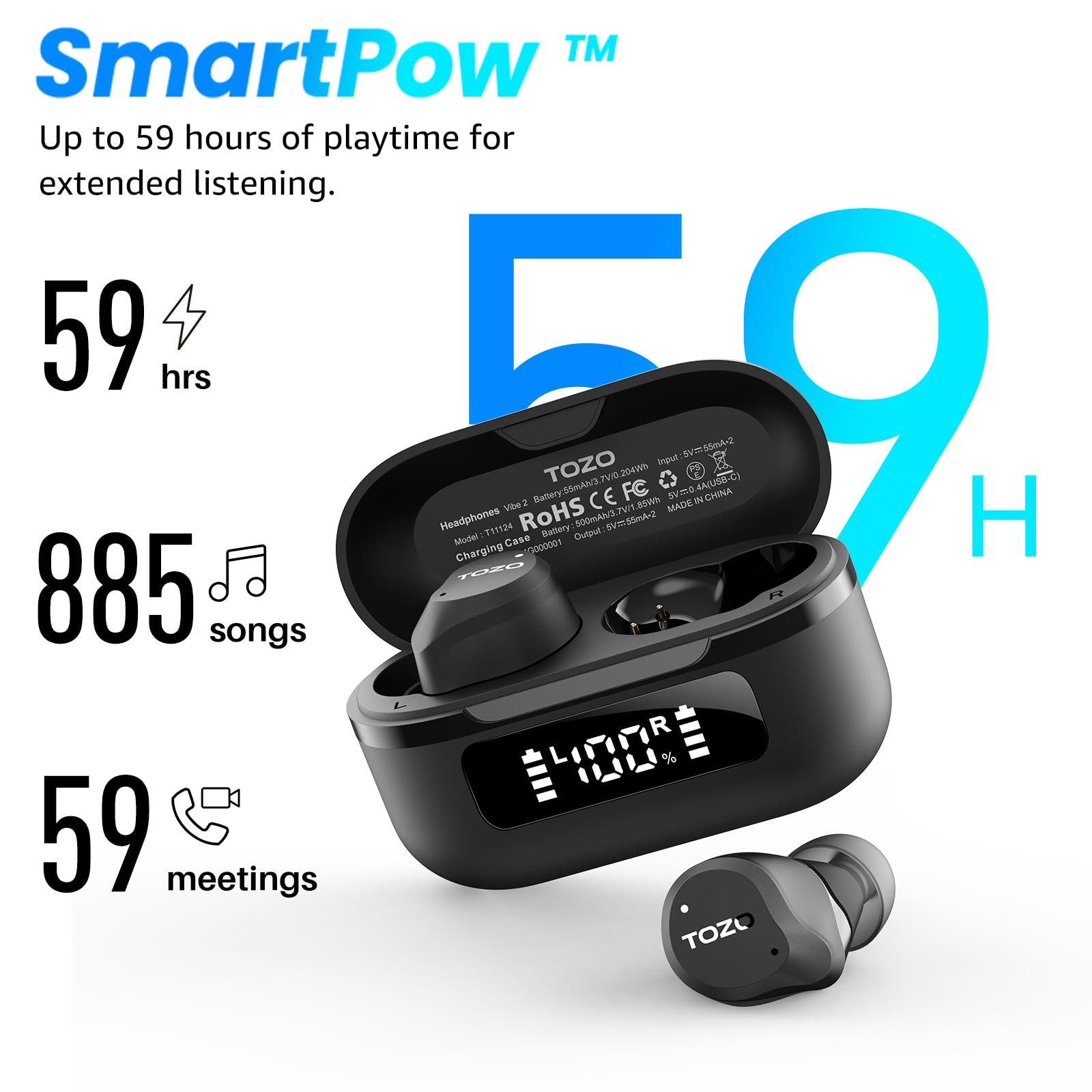 TOZO NC9 Hybrid Active Noise Cancelling Wireless Earbuds, 6 Small, Dark Black