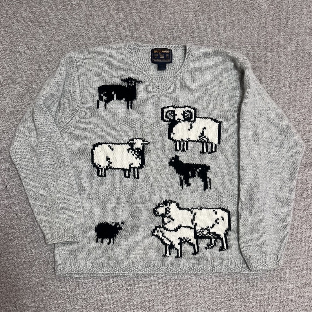 как выглядит Vintage Woolrich Womens Sheep Graphic Wool Sweater Size L Gray Cottagecore фото