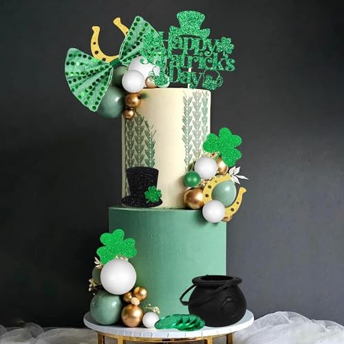 как выглядит St. Patricks Day Cake Topper Lucky Three Leaf Clover Hat Horseshoe Style 01 фото