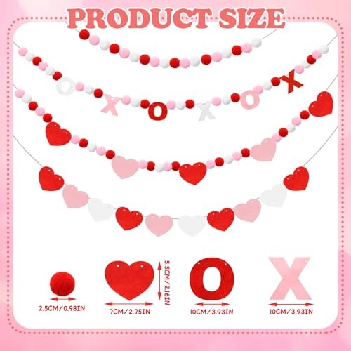 как выглядит 4 Pcs Valentine s Day Heart Felt Banner Pink XOXO Felt Banner Valentines Xoxo фото