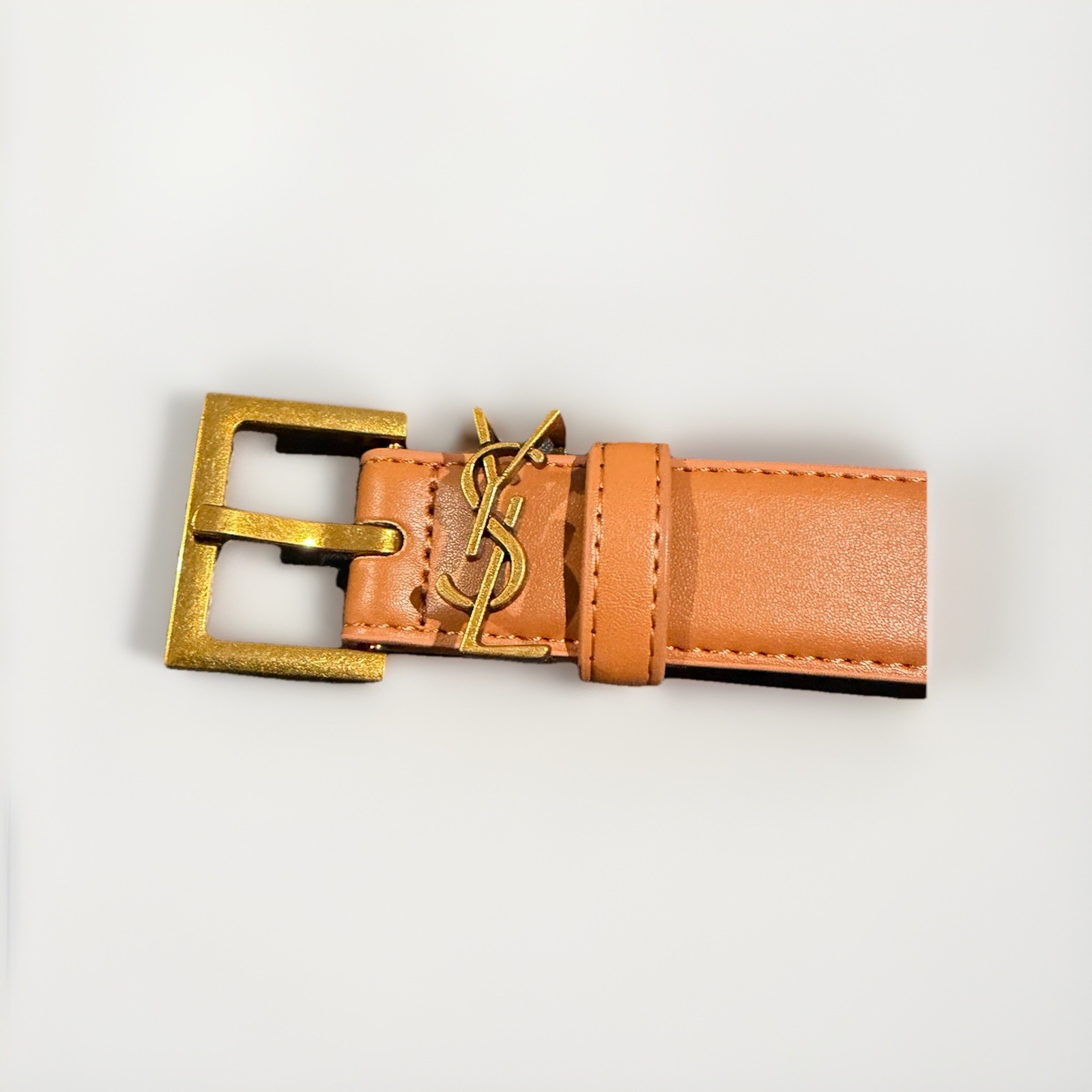 Yves Saint Laurent Belt Gold Logo On Brown Size 30-33 - 105 cm