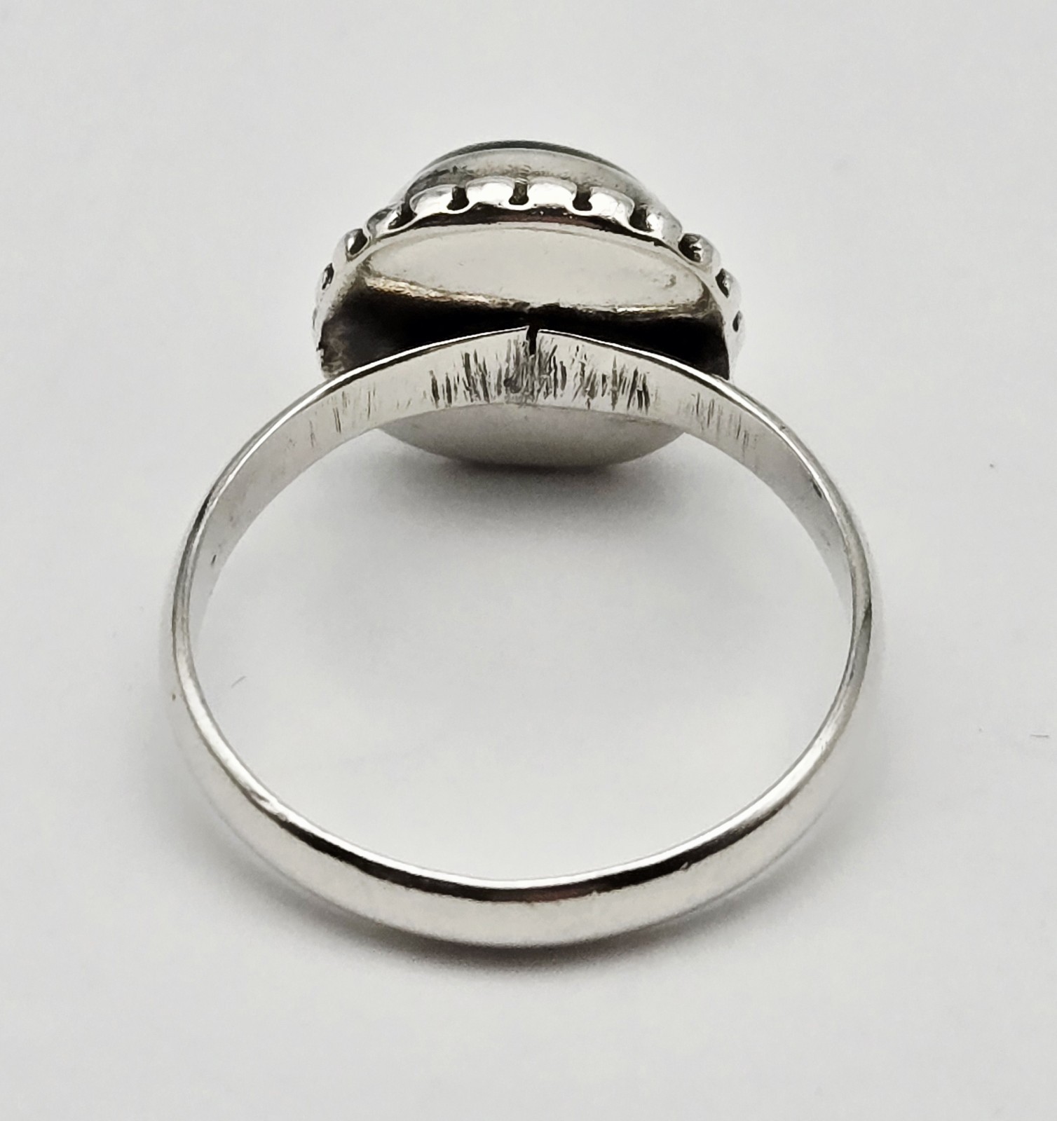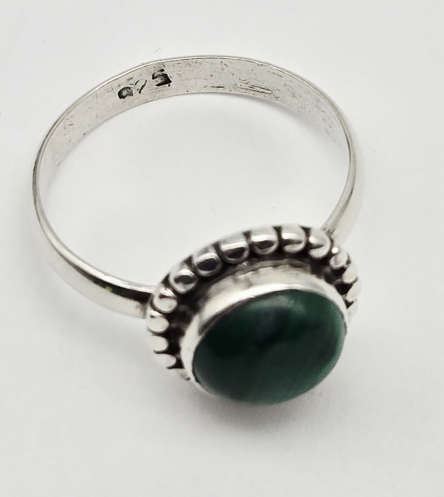 VTG Sterling Silver Malachite Gemstone Inlay Modernist Ring Size 8 - 3.4g