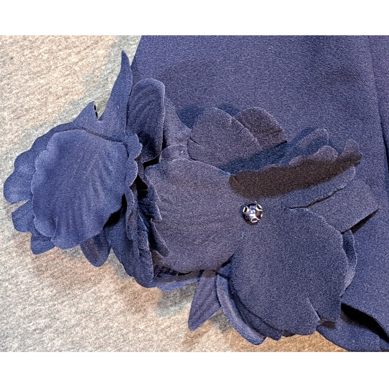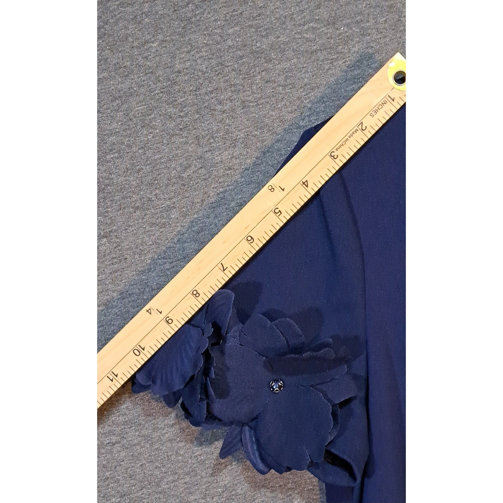 Adrianna Papell Blue Sheath Dress Floral Embellished Short Sleeve Cocktail Sz 10