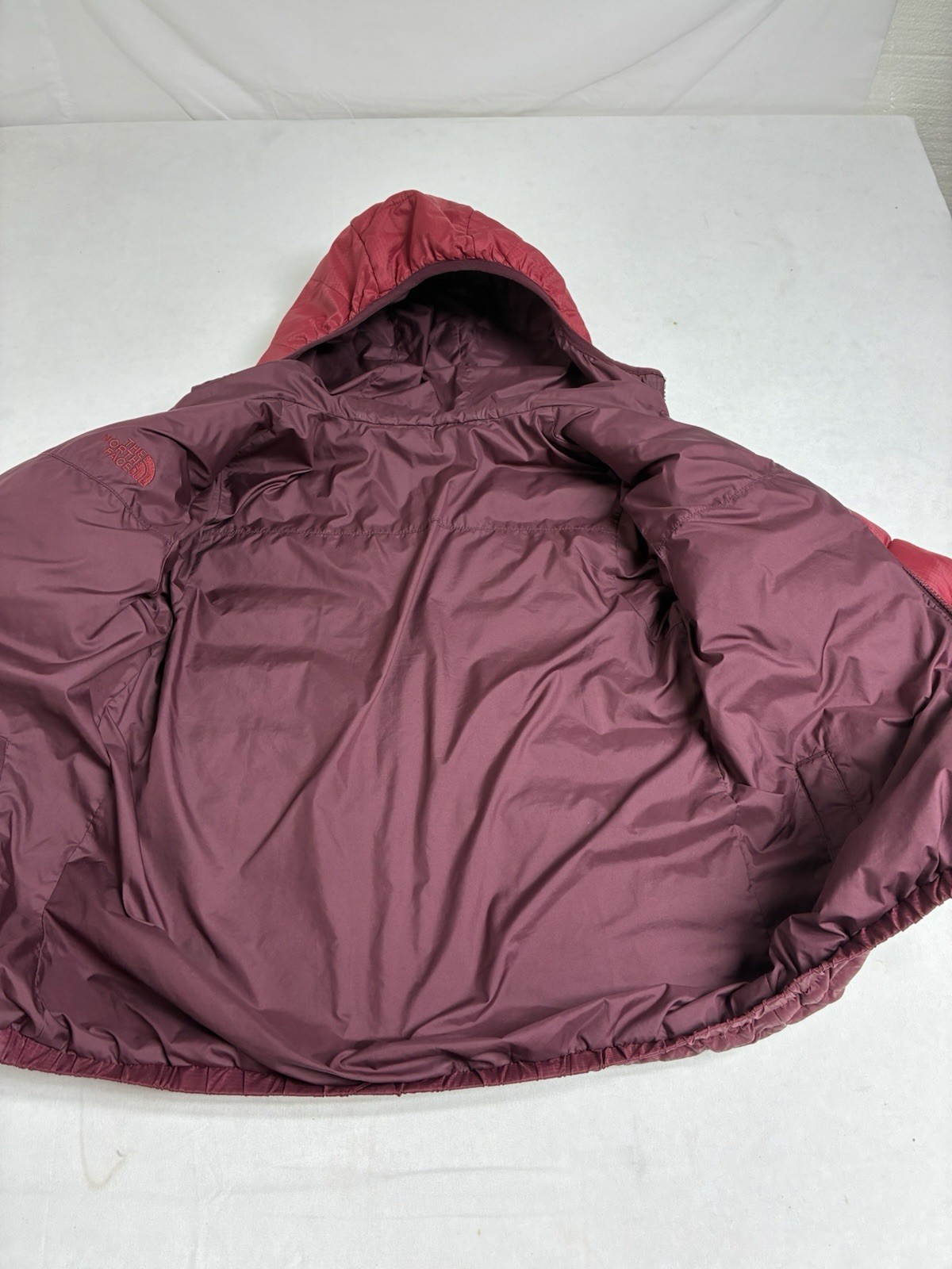 North Face 550 Boys Goose Down Puffer Jacket Red Burgundy Reversible