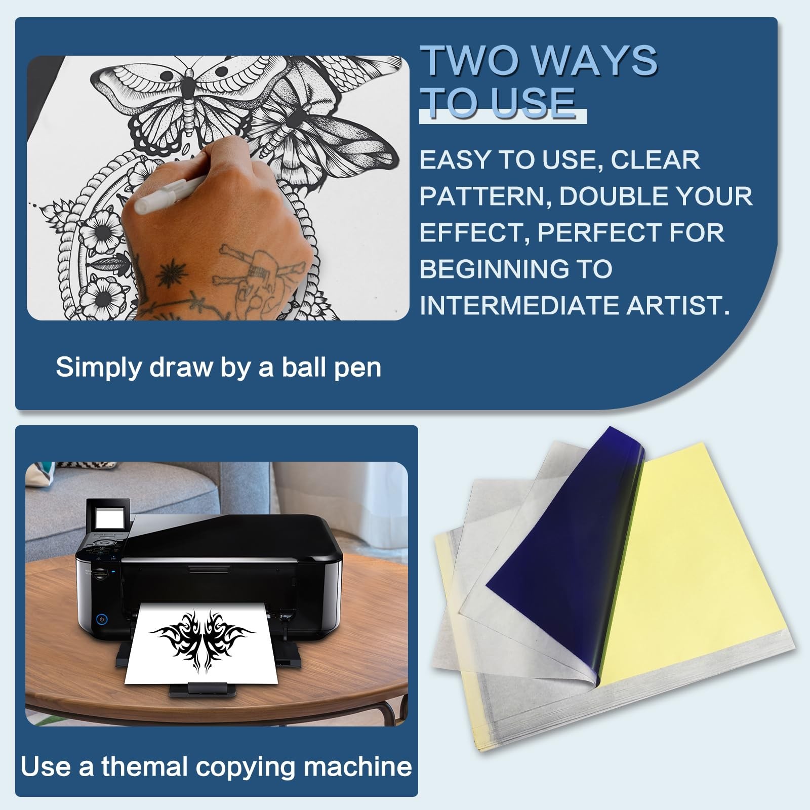 Tattoo Transfer Paper, 50 Sheets A4 Transfer Paper for Tattoo Practice, 4-Lay...