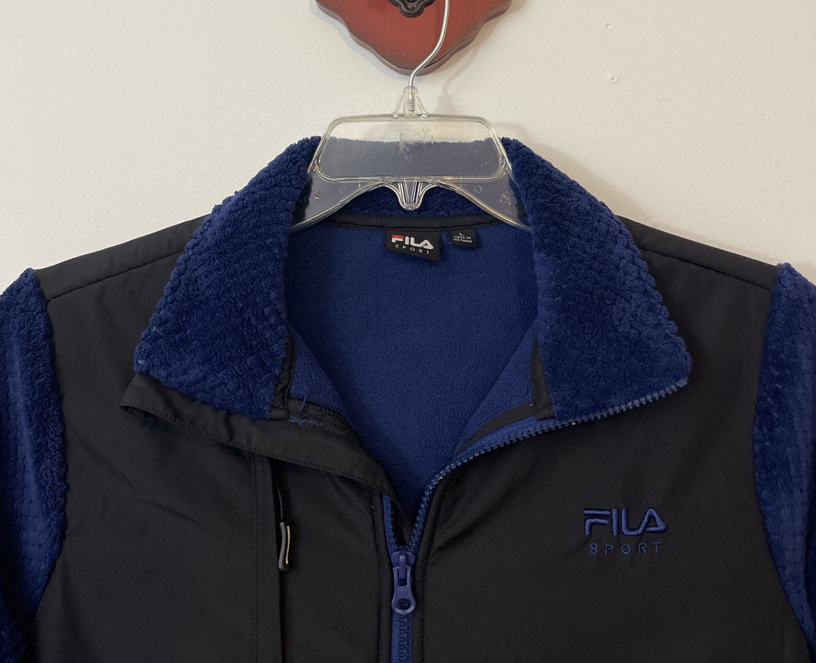 как выглядит Fila Sport Womens Large Blue Zip-Up Ribbed Fleece Light Collared Jacket M896 фото