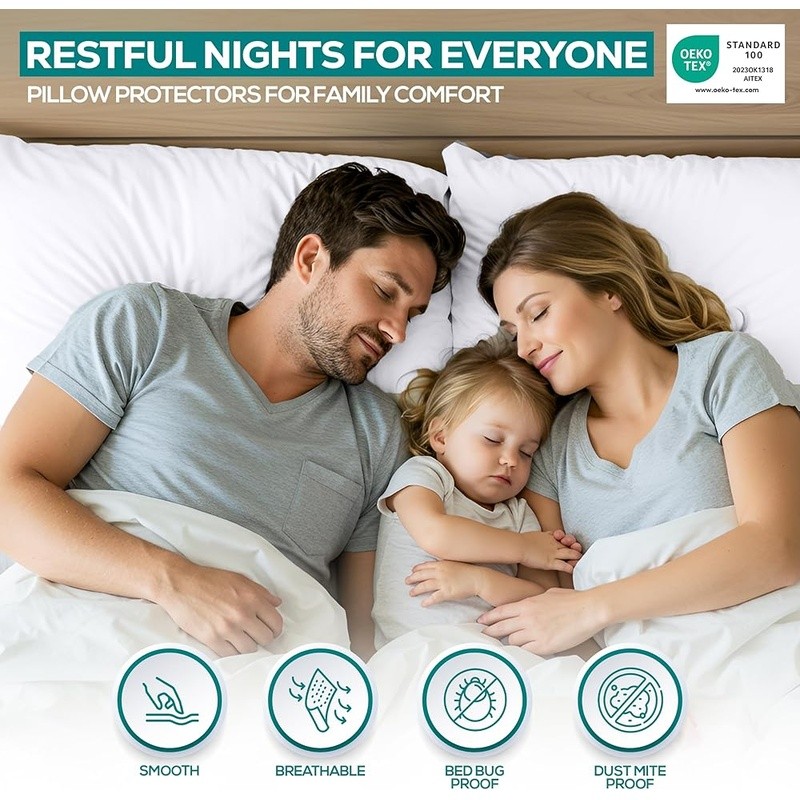 Waterproof Pillow Protectors Bed Bug Proof Polyester Zippered Covers Easy Care
