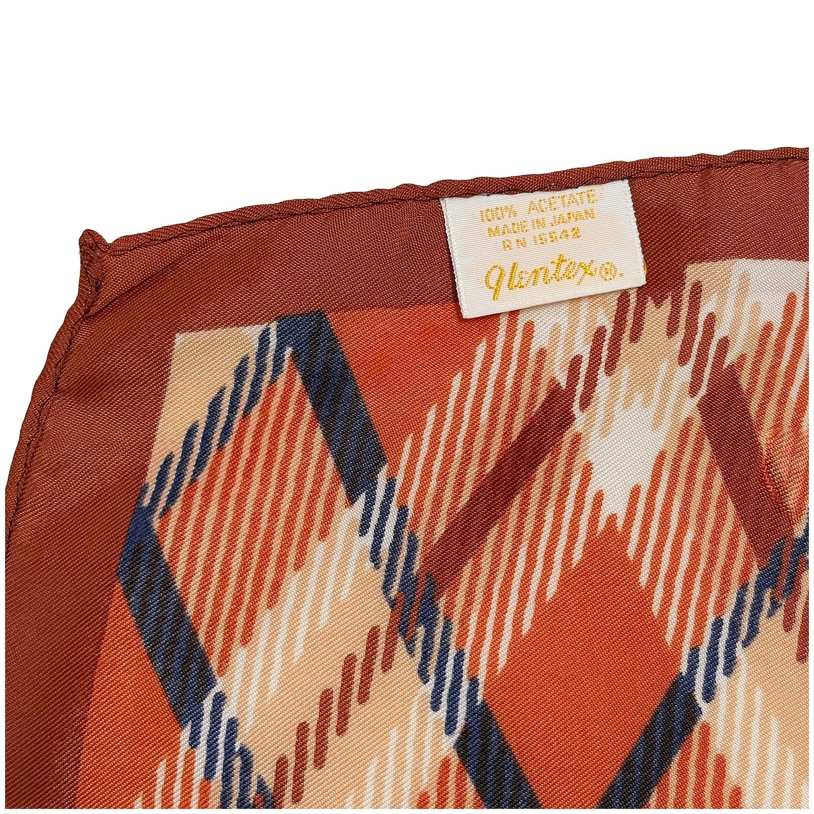 Vintage Glentex Square Scarf Argyle Plaid Acetate Japan Orange Navy Blue 27