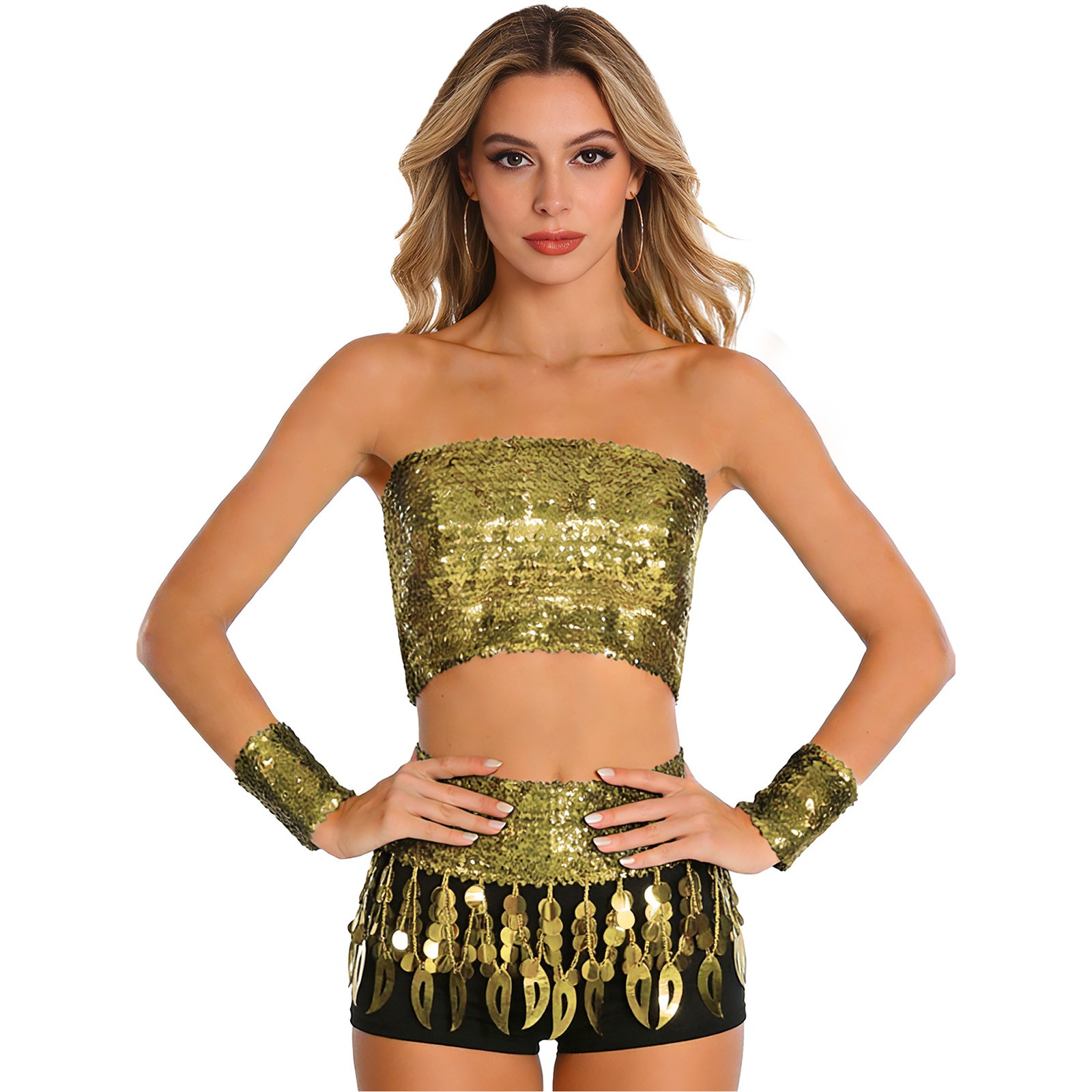 как выглядит Womens Sets Shows Dancewear Performances Outfit Jazz Sequin Corset Dance Stage фото