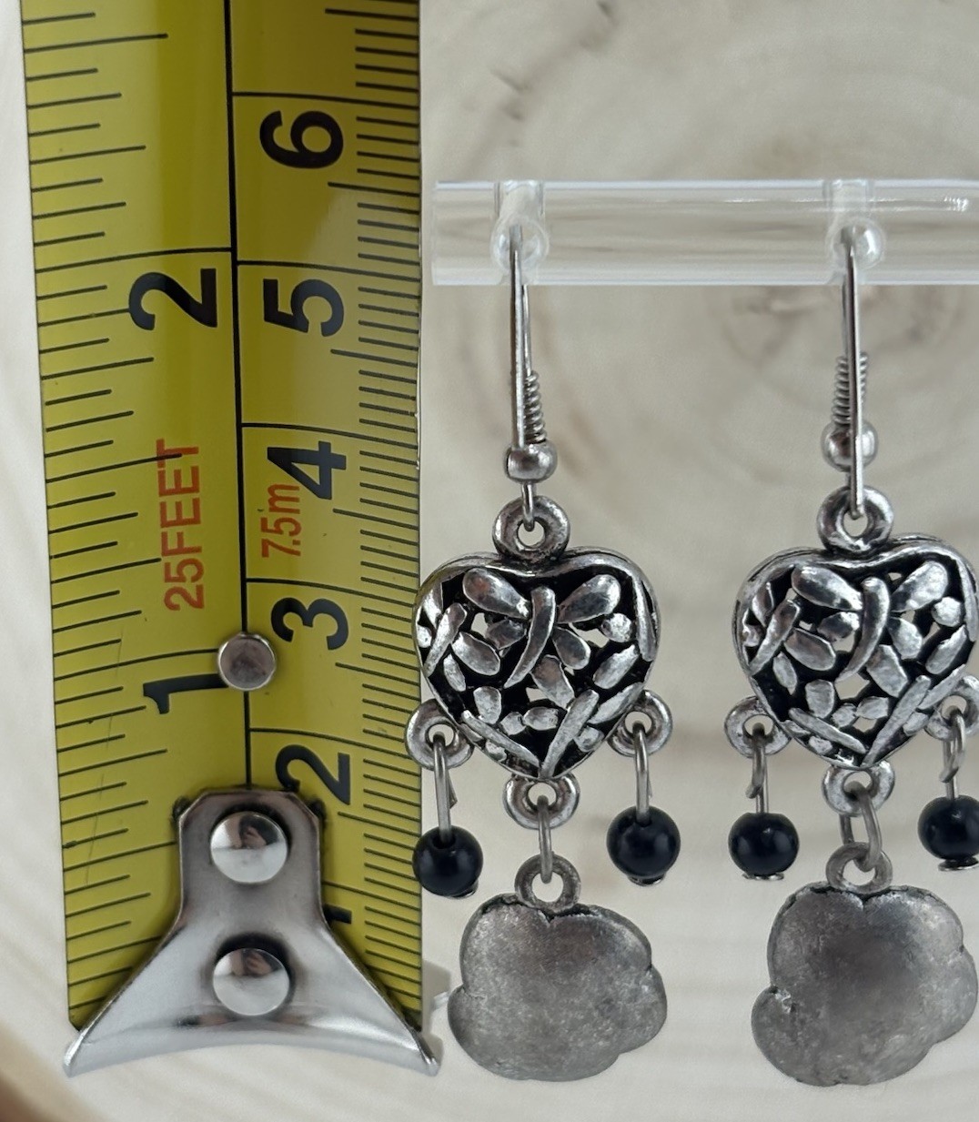 Antiqued Silver Tone Rose Flower Hoop Earrings 1 Inch Floral Dangle
