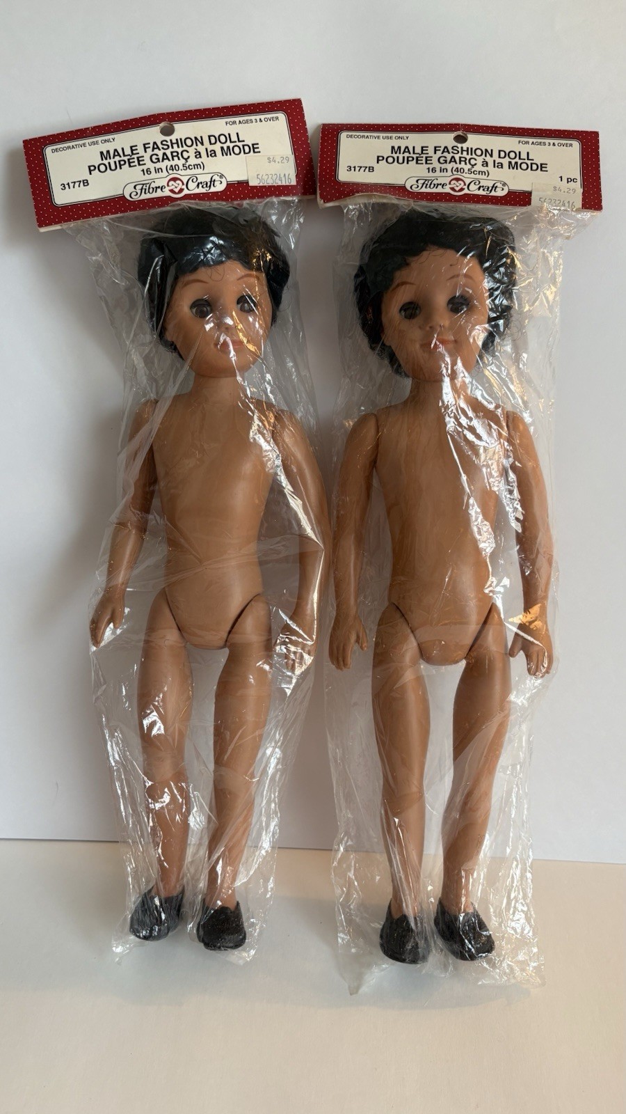 2 Vintage NOS/NEW Fibre Craft 16 Male Fashion Dolls Blinking Eyes 3177B Sealed