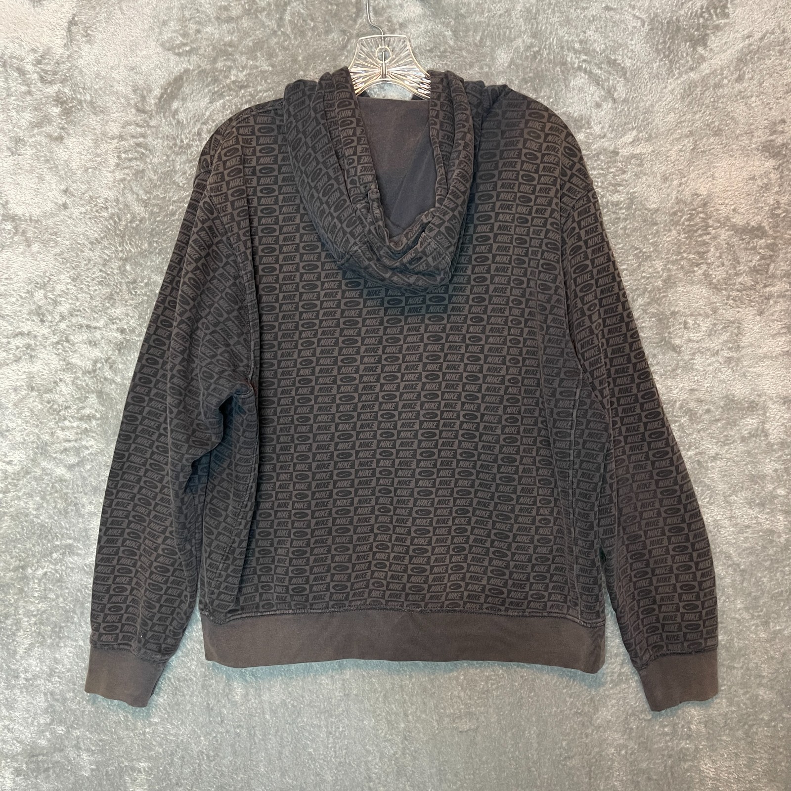 Nike Men Patterned Swoosh Logo Club Fleece Pullover Hoodie Faded Sweatshirt M