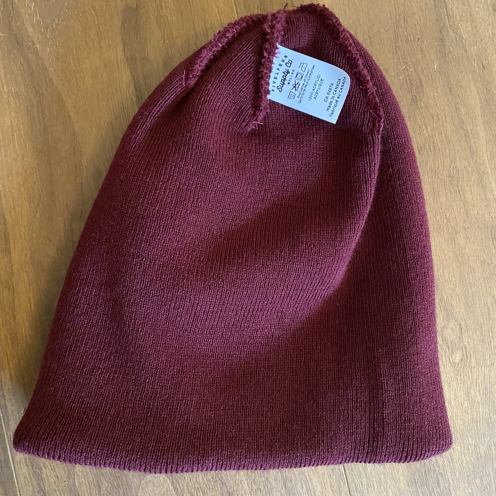 как выглядит Sun Ski Sports Beanie Burgundy Knit Winter Hat Made in Canada фото