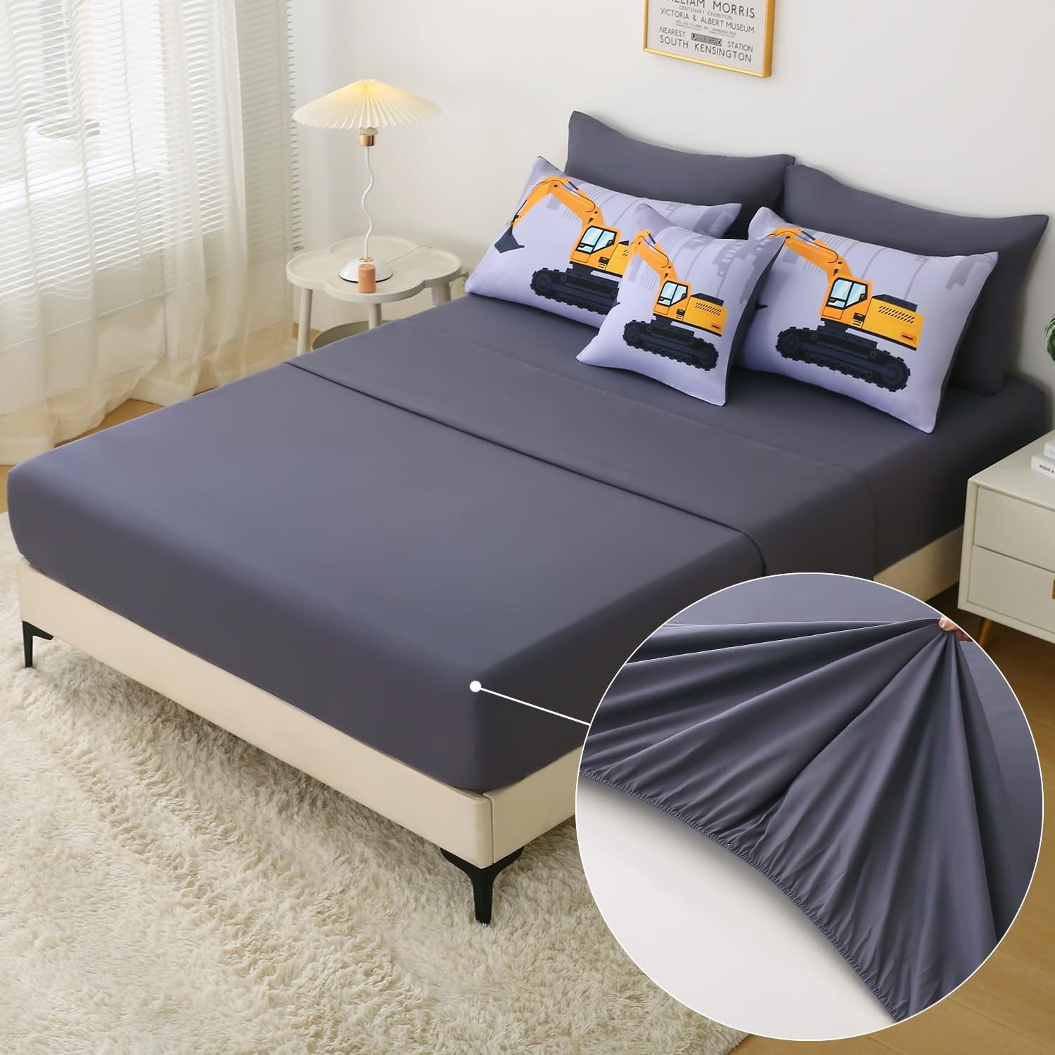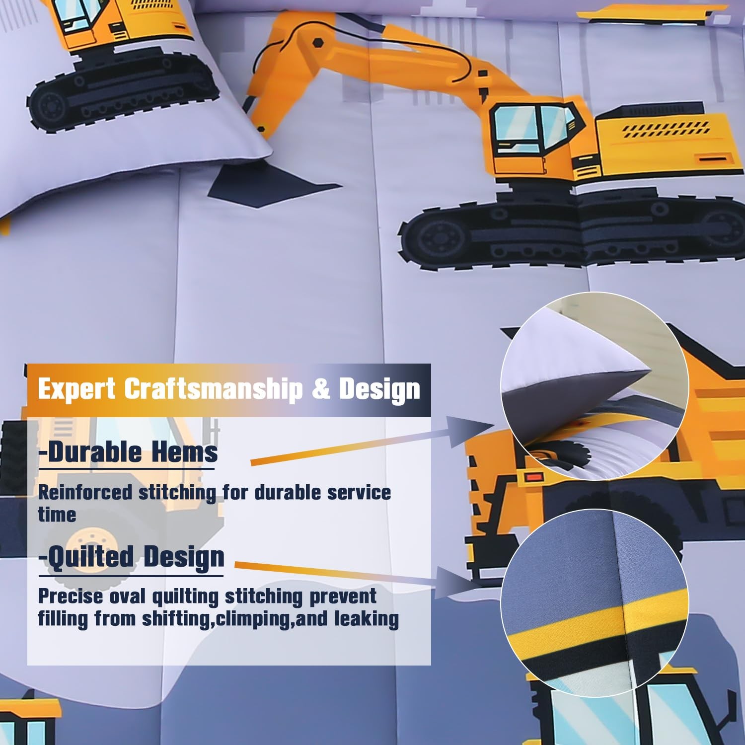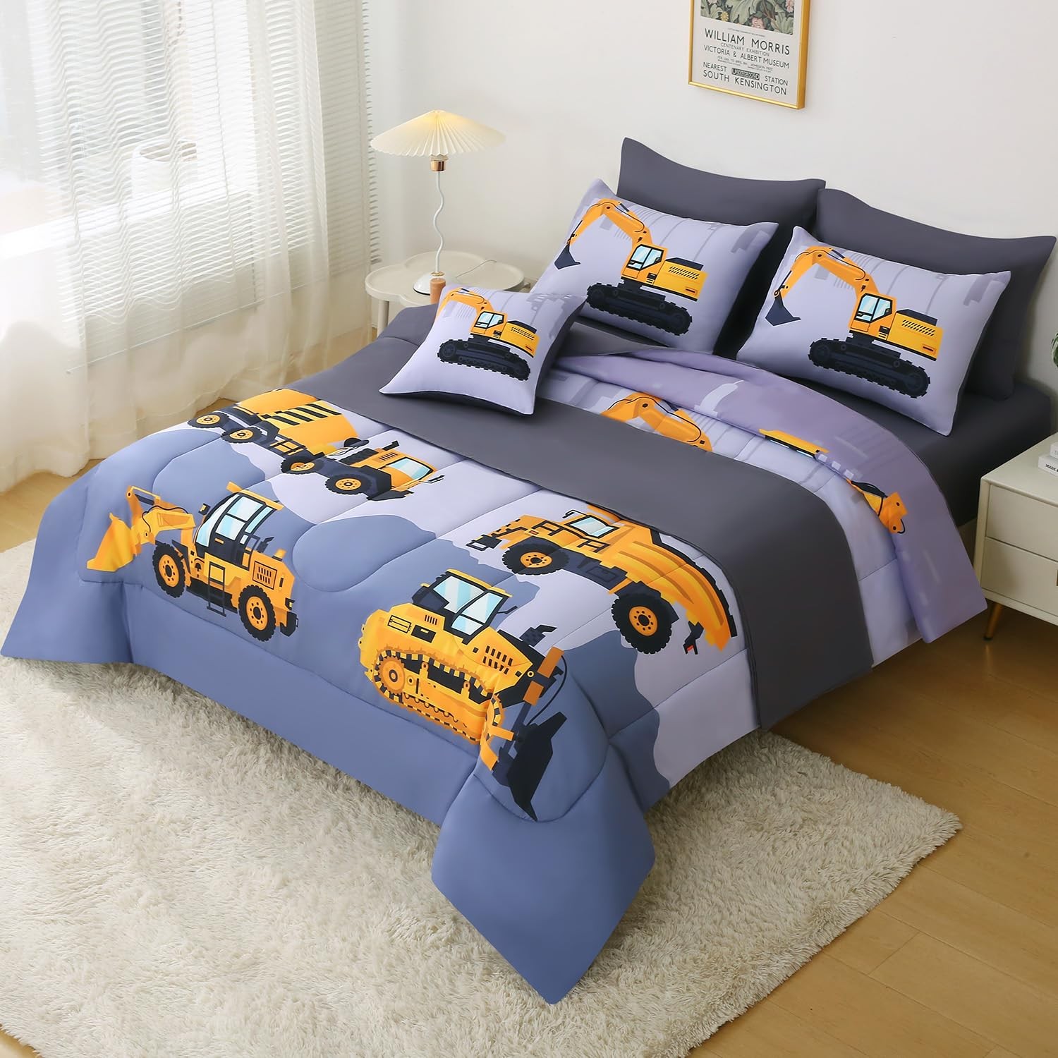 Construction Full Bedding Sets for Boys Kids,8 Piece Bed in A Bag 3D Cartoon ...