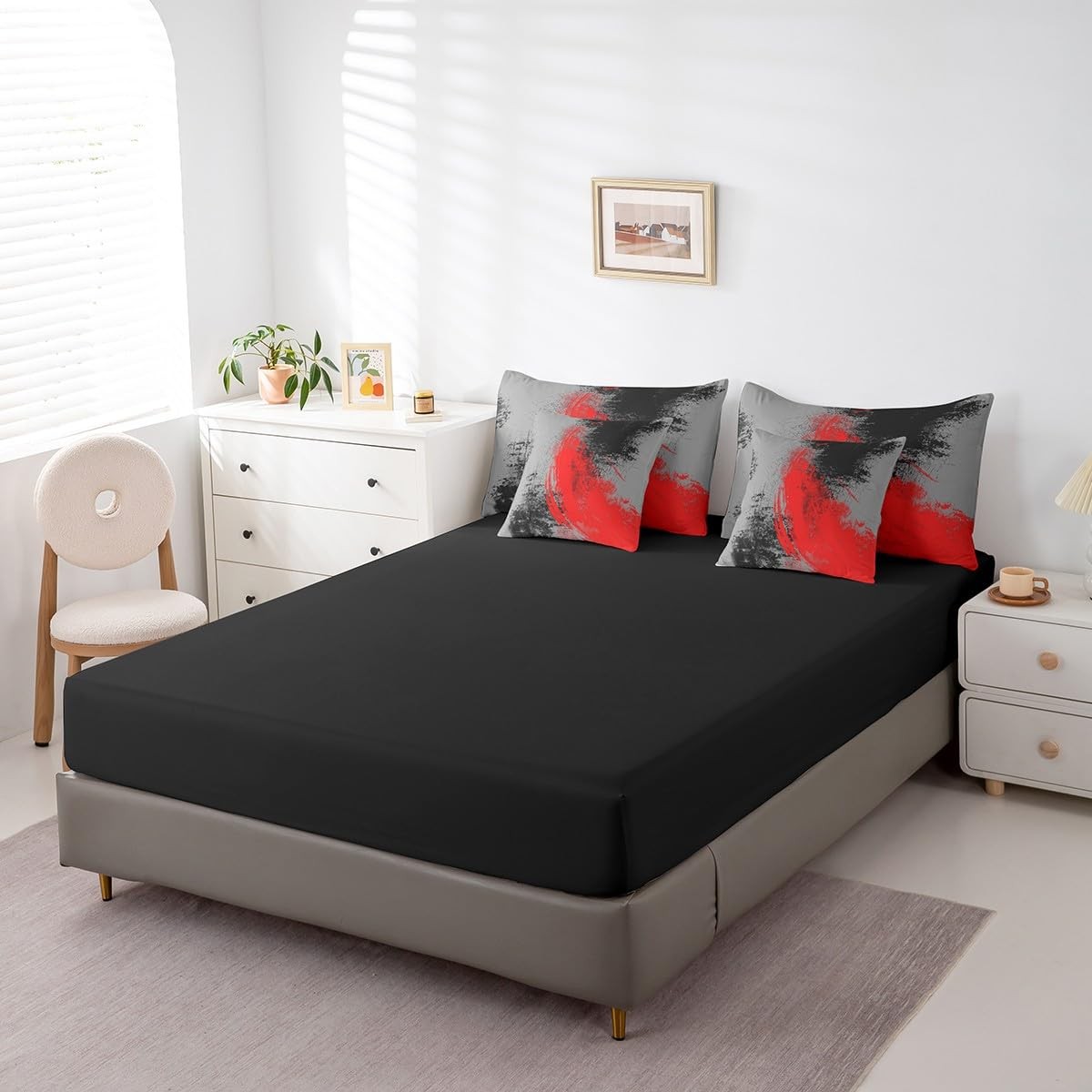 Red Grey Black 7 Piece Bedding Set Twin Size Kids Abstract Bed Set Includes C...