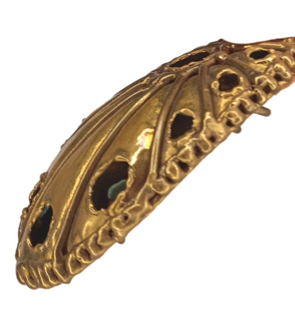 Goldtone Brass Colored Metal Belt Buckle With Turquoise Colored Stones Peacock