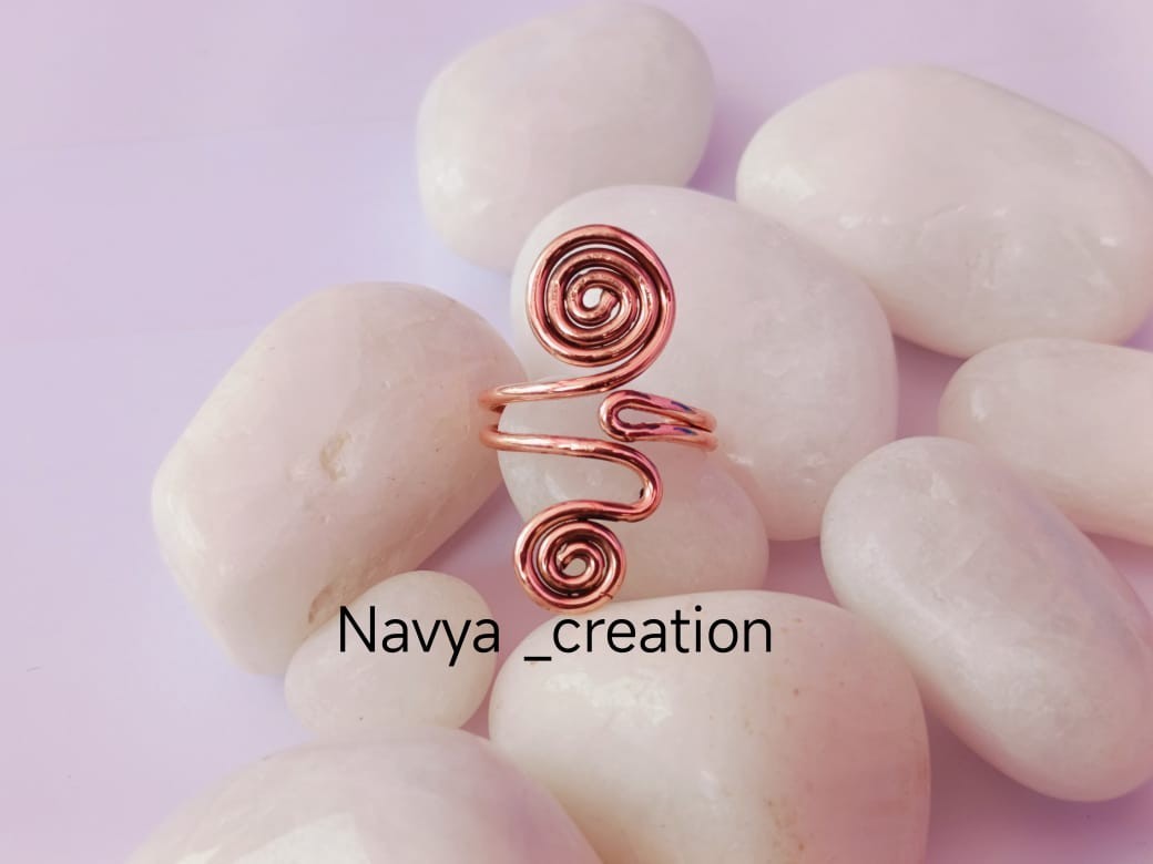 как выглядит Handmade Copper Spiral Ring: Adjustable Boho Healing Jewelry фото