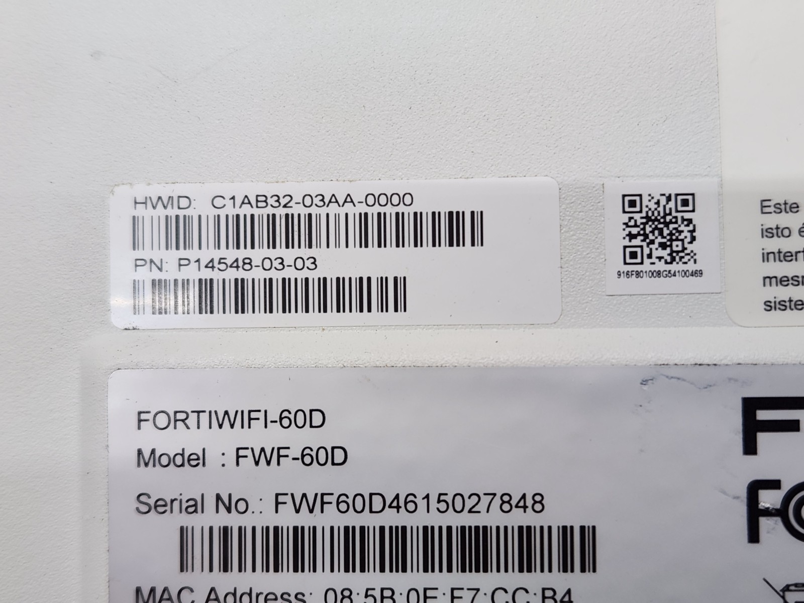 Fortinet FortiWiFi FWF-60D Network Security Appliance Firewall, No Power Cord